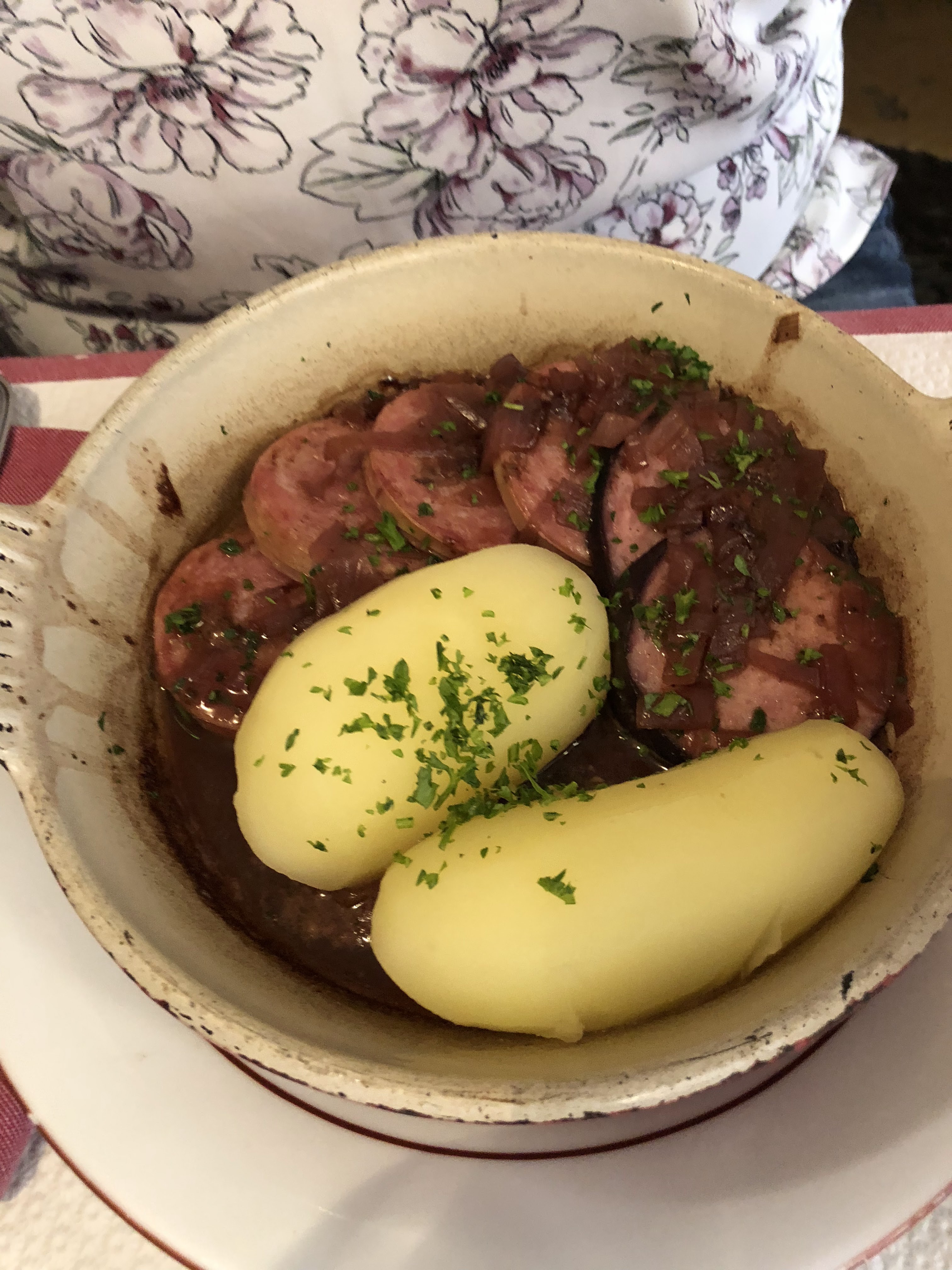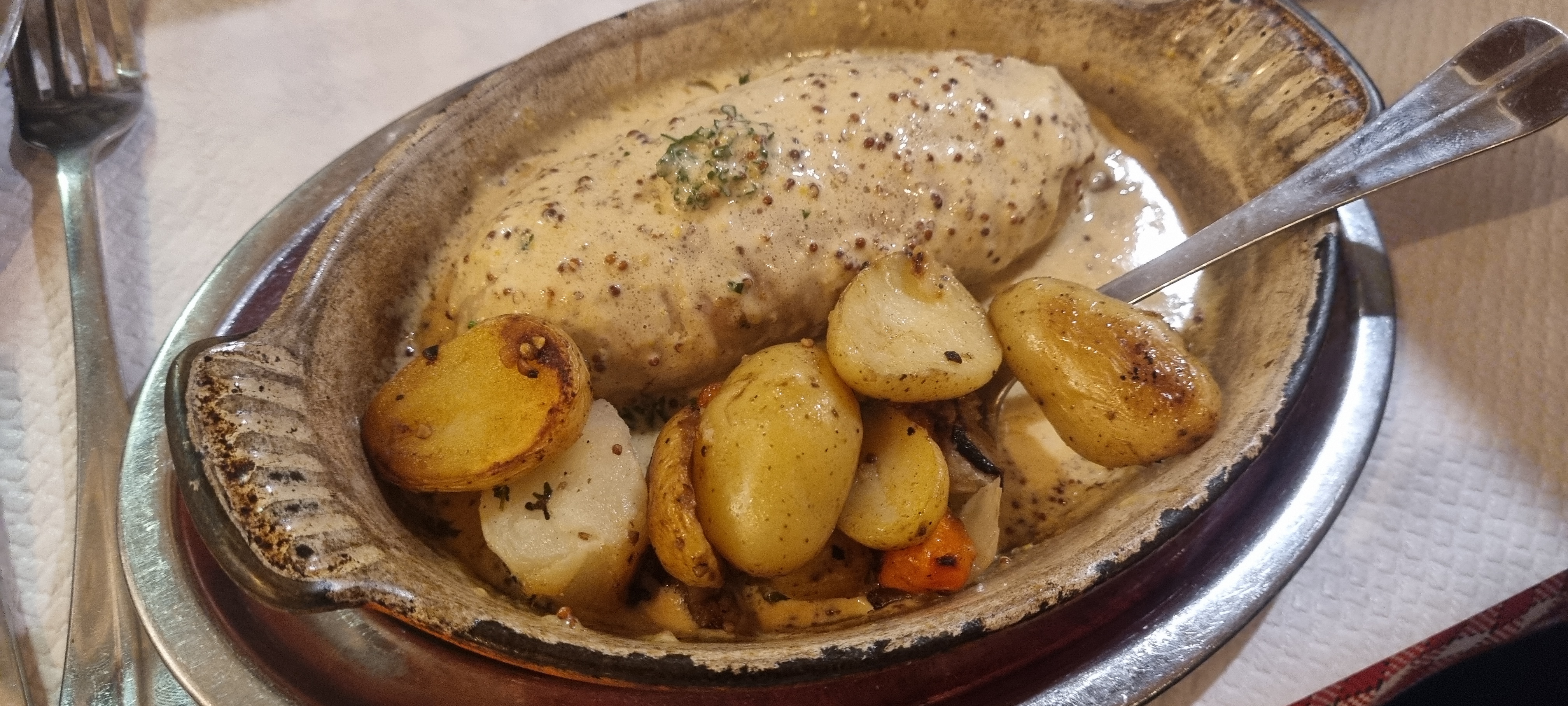 Le gratin d'andouillette accompagné de petites pommes de terre sautées est un régal !!