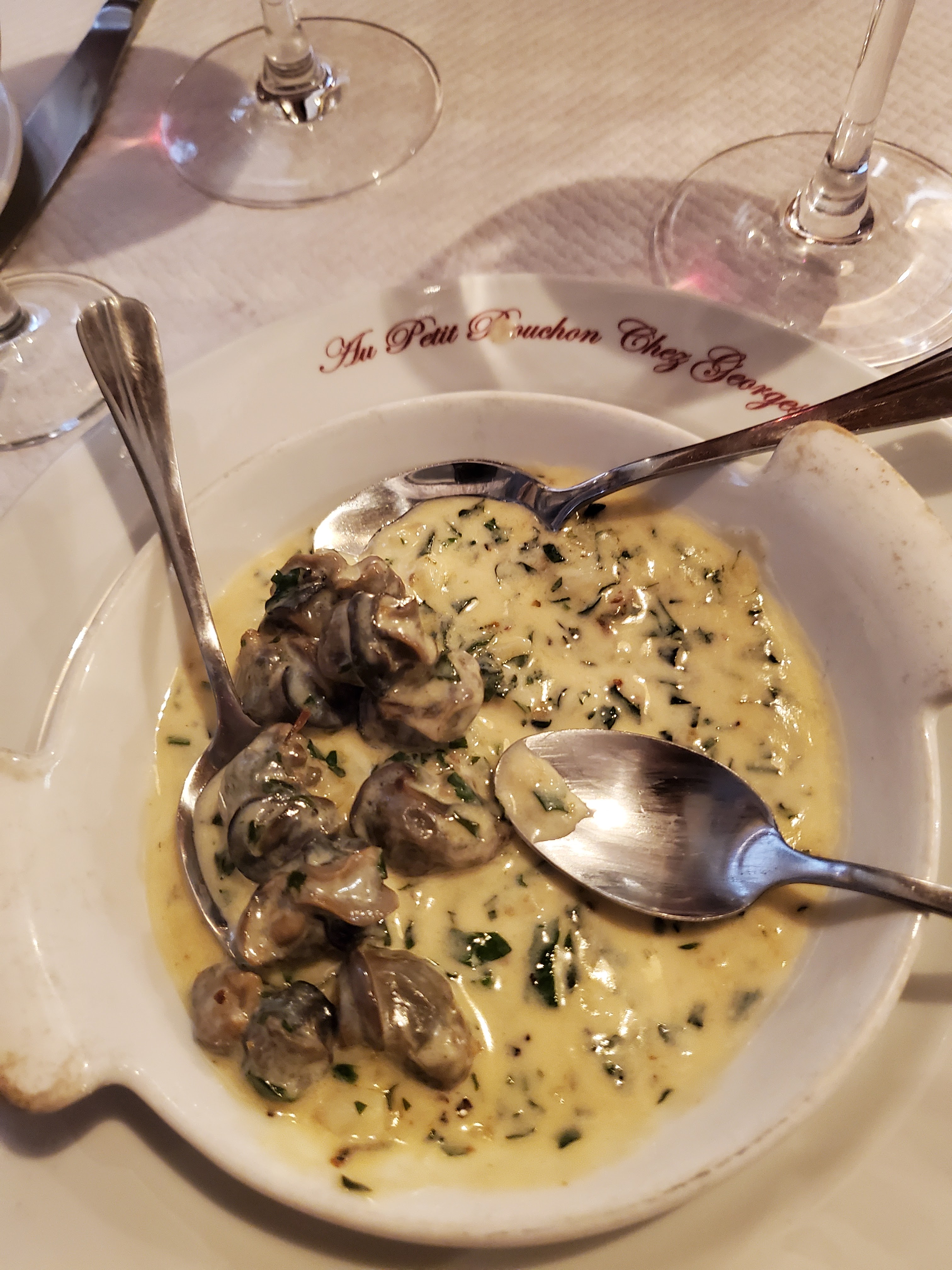 Super escargot et rognon. Merveilleux cassis aussi. L'endroit est petit et bondé, je pense que ça fait partie du plaisir d'aller dans un bouchon.