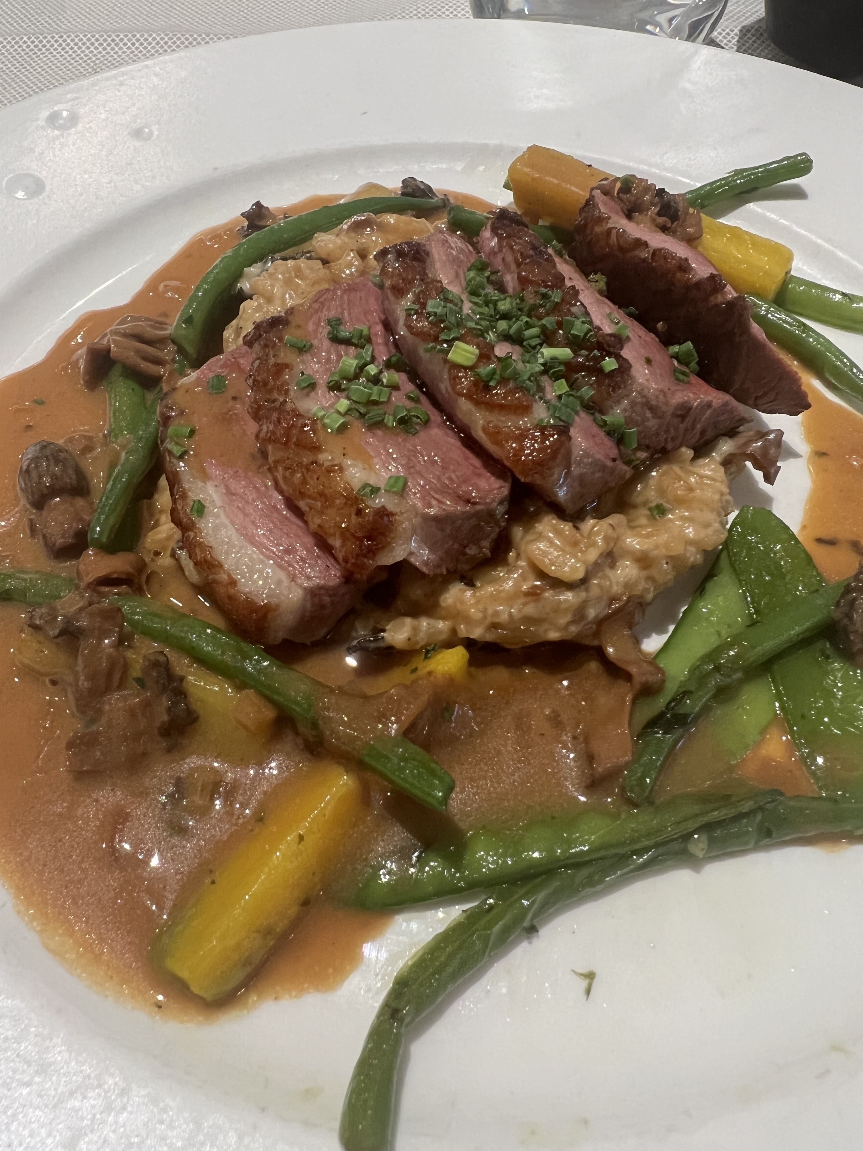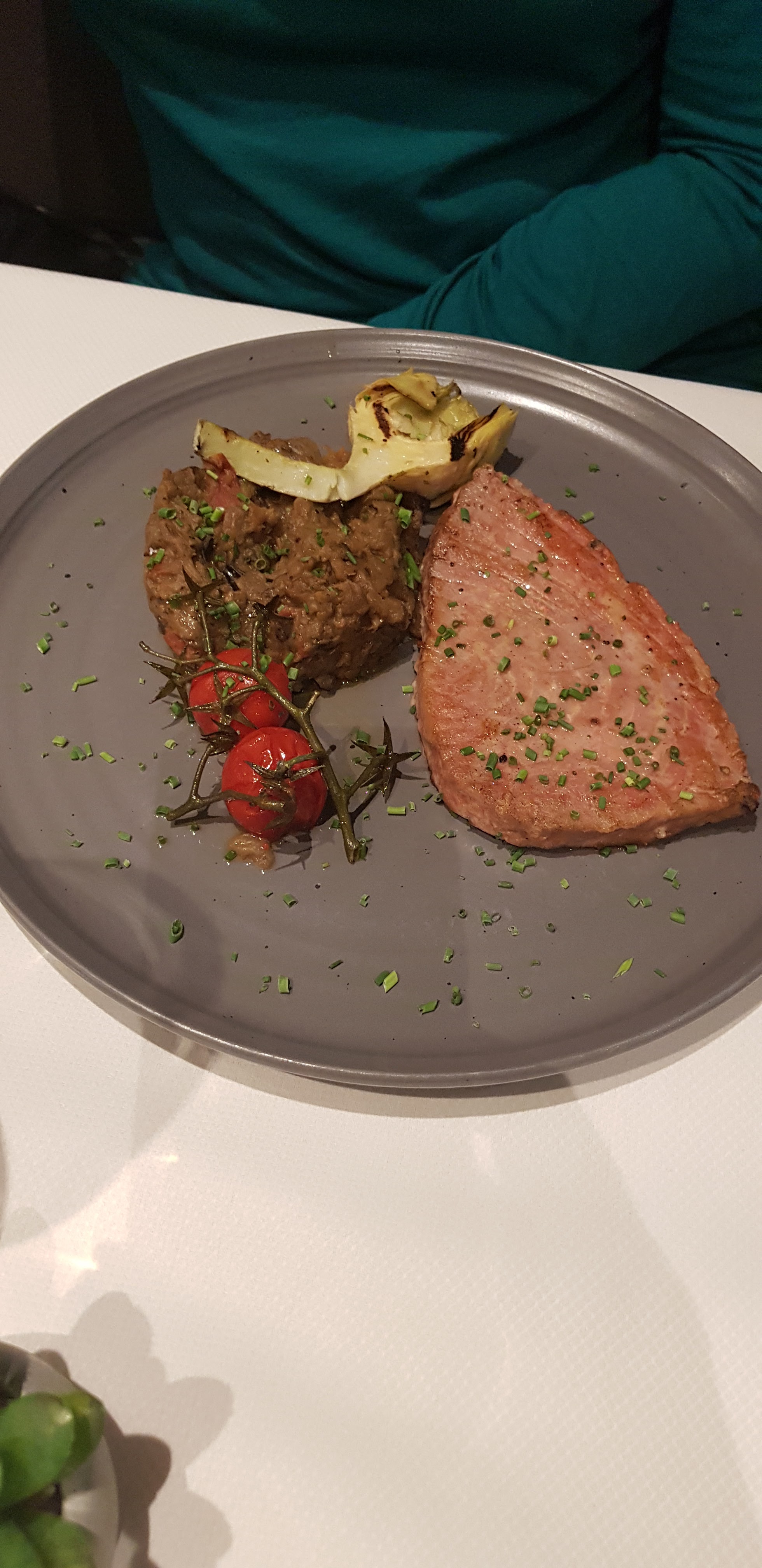 Très bon repas, des produits frais, découverte de nouvelles saveurs. mais un peu déçue par le service. Trop rapide à mon goût et des oublis (verre de vin commandé pour la viande et amené après reclamation pour le fromage et celui ci n'était pas adapté pour le fromage !!!). Une table trop proche du passage et je n'ai pas apprécié que les gens passent leur temps à regarder mon assiette.