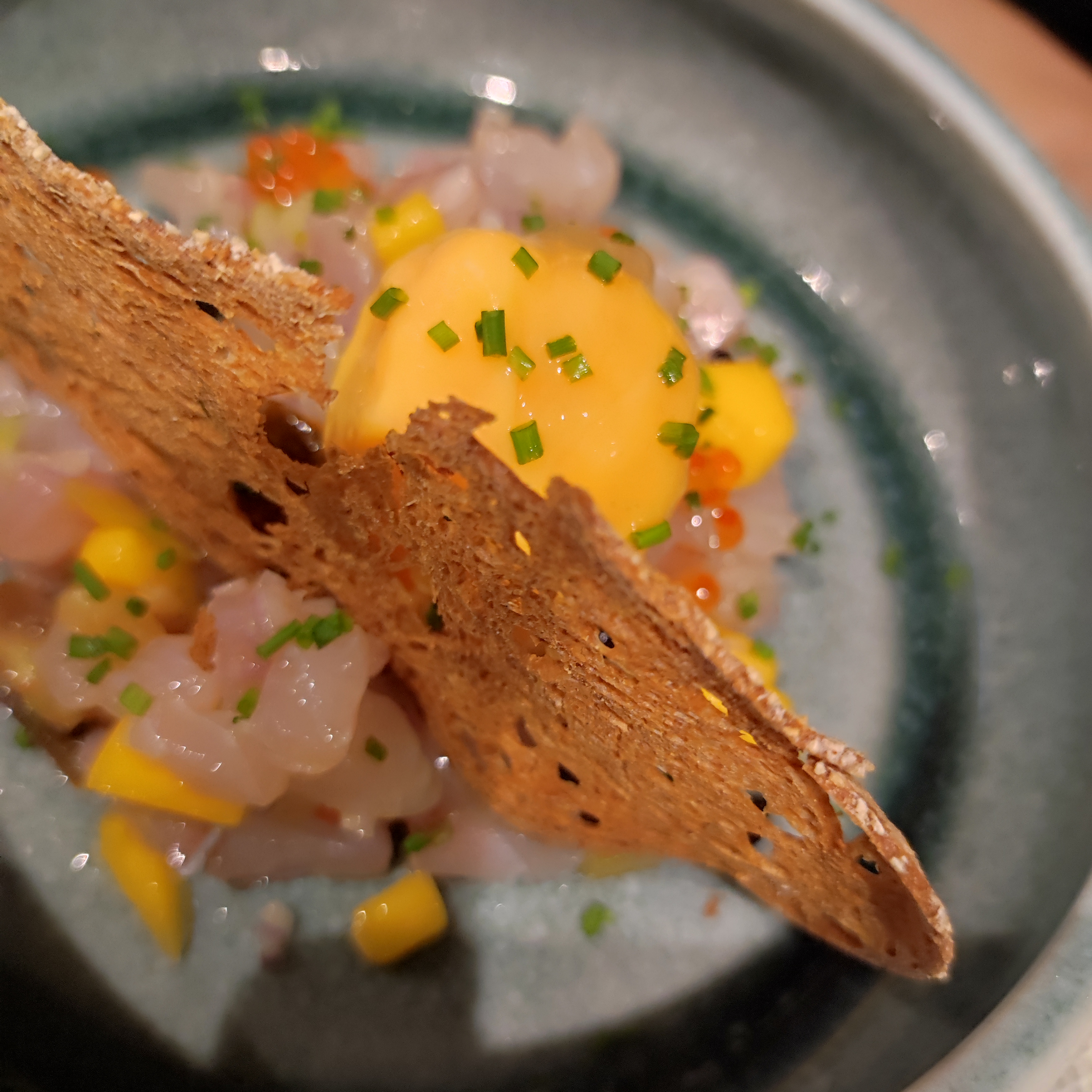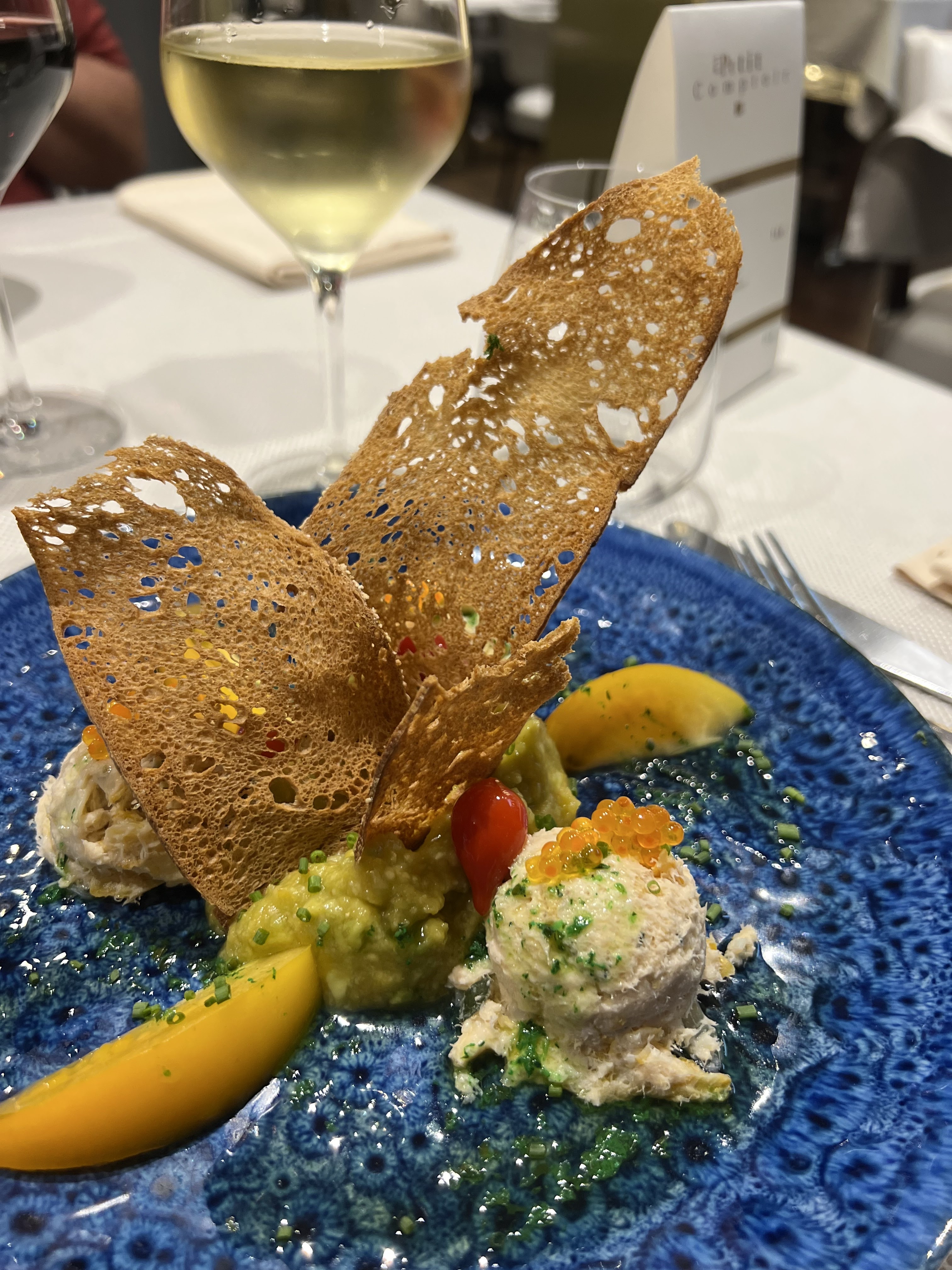 Deux menus a 50 euros . Entre une entrées sans goût(cevice de bar a la mangue ), une autre pas exceptionnel ( marbre de foie gras ). Des plats pour le coup trop salé , et un beignet d'artichauts trop gras (pavé d'Angus). Et pour finir un dessert (crème brulée fraise framboise ) a moitié prise . Nous ne sommes pas exigeant de manière générale mais pour 50 euros le menue j'estime que nous devons l'être un minimum.