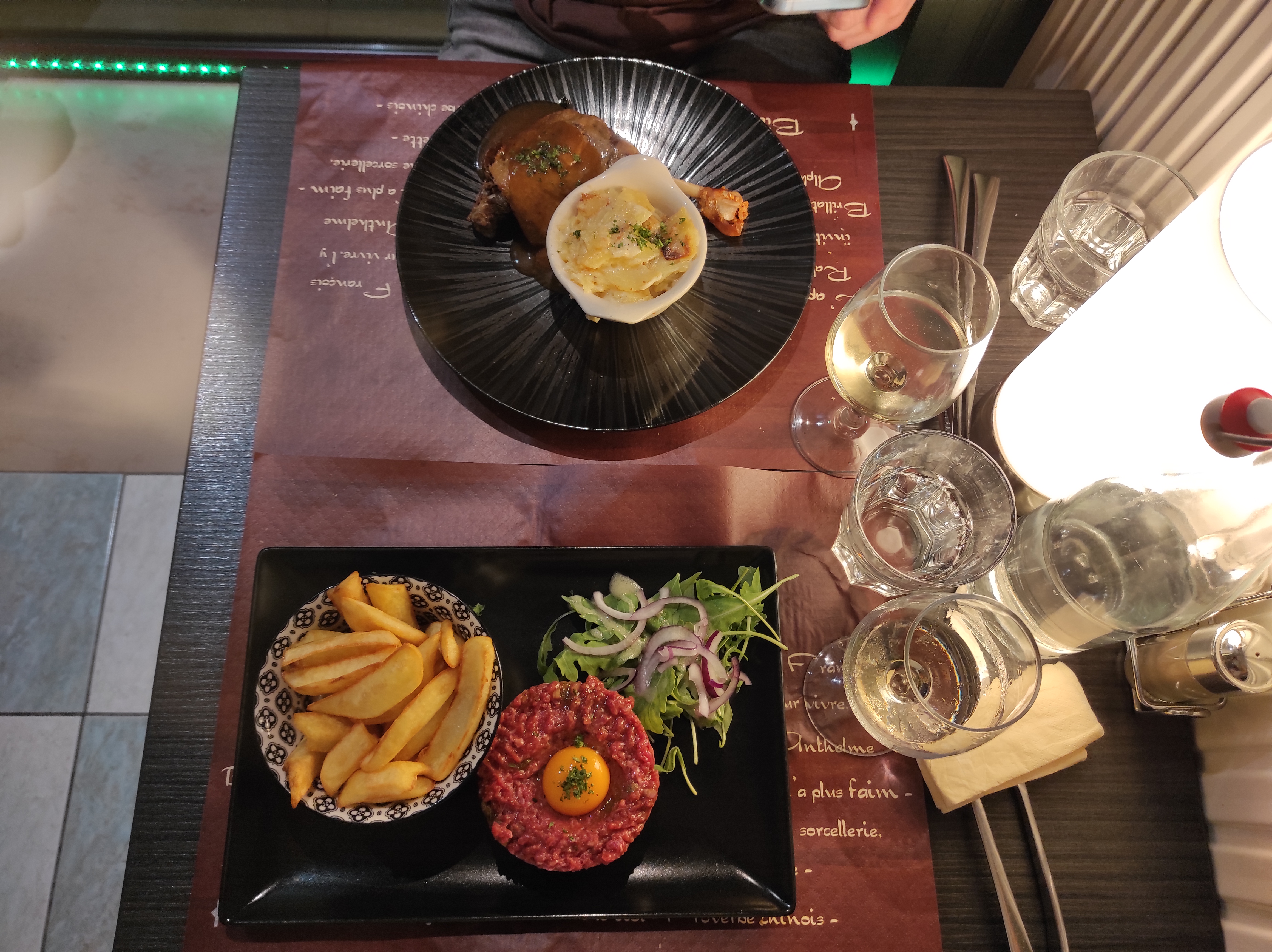 L'un des meilleurs restaurants que nous ayons jamais mangé en France ! Les escargots étaient sympas, le tartare et le canard d'un autre niveau ! Le vin de la maison était également très bon, la crème brûlée également incroyable et les prix sont raisonnables pour un menu. J'ai hâte d'y retourner !