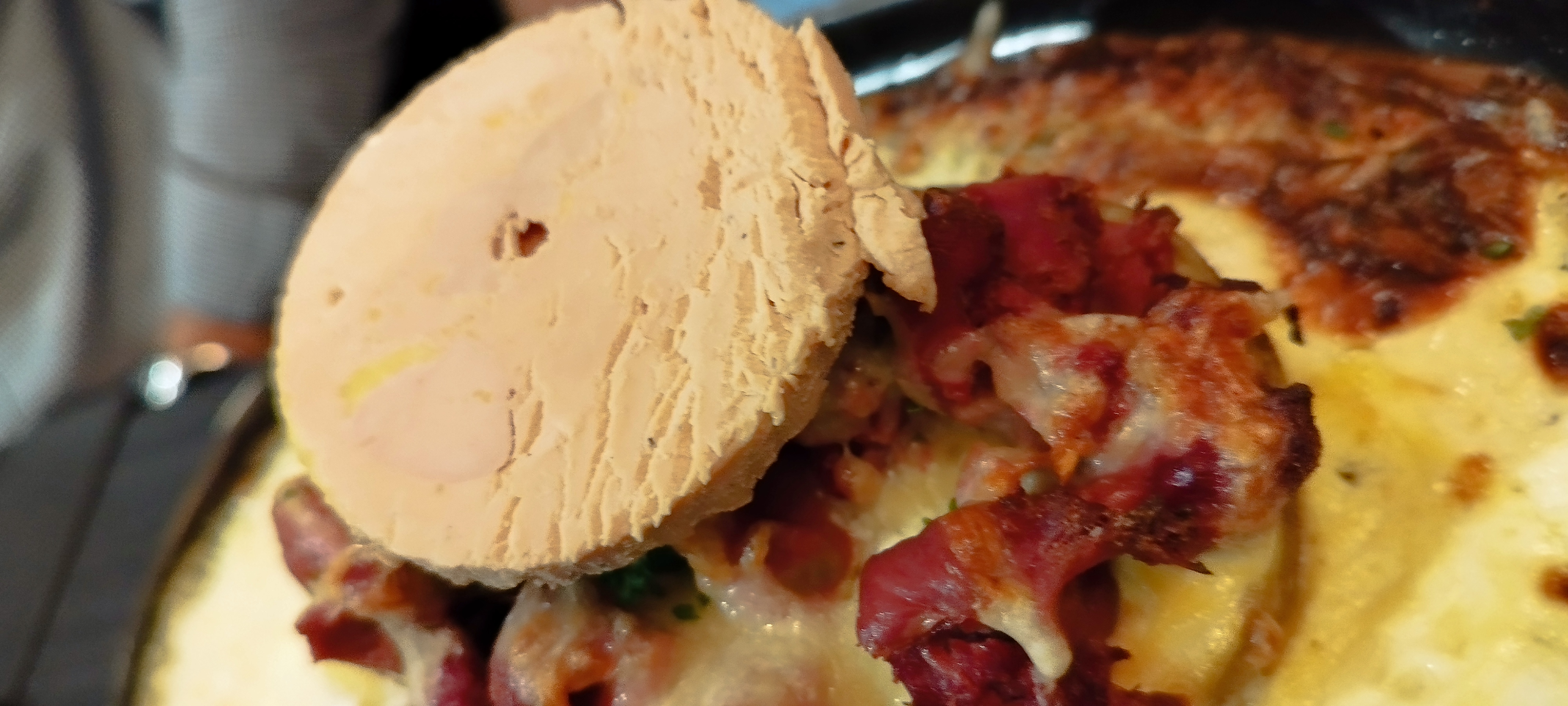Un peu hors des sentiers battus mais ça vaut le détour. Petit restaurant local qui vaut la peine de téléphoner à l'avance. Nous avons eu l'une des spécialités, un plat de pommes de terre avec de la viande, du foie gras et du fromage, ainsi que le canard confit qui étaient tous deux merveilleux. Le plat de pommes de terre est très copieux. Service et personnel très bons compte tenu des deux langues. Verre de Champers et du vin rouge. Deux convives heureux.