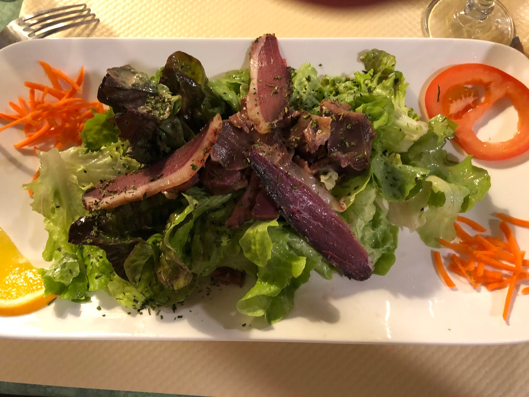 Un menu à 18,50 euros pour salade de gésier, un cassoulet qui est très bon et un dessert maison. Vous ne prenez aucun risque dans ce restaurant pour manger local.