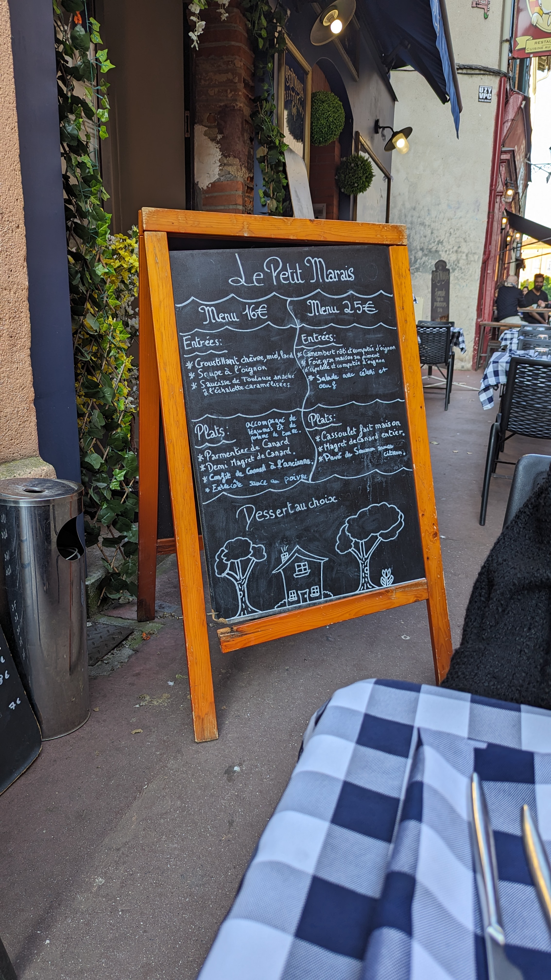 Nous cherchions un petit restaurant pas cher dans les rues de Toulouse. Après une vingtaine de minutes à errer dans ces dernières, en voyant de nombreux menus à plus de 30 €, nous sommes tombés sur ce petit restaurant, avec un menu de 16 €. Je ne vais pas vous cacher que sur le coup, nous nous sommes un peu méfiés vu le prix peu cher, mais aussi par le fait qu'il n'y est personne à table... Mais nous avons quand même décidé d'y aller. Alors, laissez-moi briser toutes les pensées et stéréotypes qui peuvent exister sur un restaurant, ce n'est pas parce qu'il n'y a personne et que les prix sont bas que c'est un attrape touriste ! LE REPAS ÉTAIT TRESSSSS BON ! Un menu complet pour seulement 16 €, de très bonne qualité avec la quantité parfaite, juste suffisante ! De plus, la serveuse, une jeune fille vraiment sympathique, a discuté avec nous le long du repas ! Je tiens à dire que je croise rarement des serveurs/ serveuses aussi agréables, mais vraiment vraiment gentil. Bref, je recommande à 100 % ce restaurant ! Merci pour cette belle soirée ! PS : bonne continuation à la serveuse qui s'en va 👋🏻👏🏻. ( Éléments de repas : salade chèvre chaud ; salade avec saucisse de Toulouse ; confit de canard : magret de canard ; entrecôte sauce poivre ; tarte citron ; panna cotta ; fondant au chocolat)
