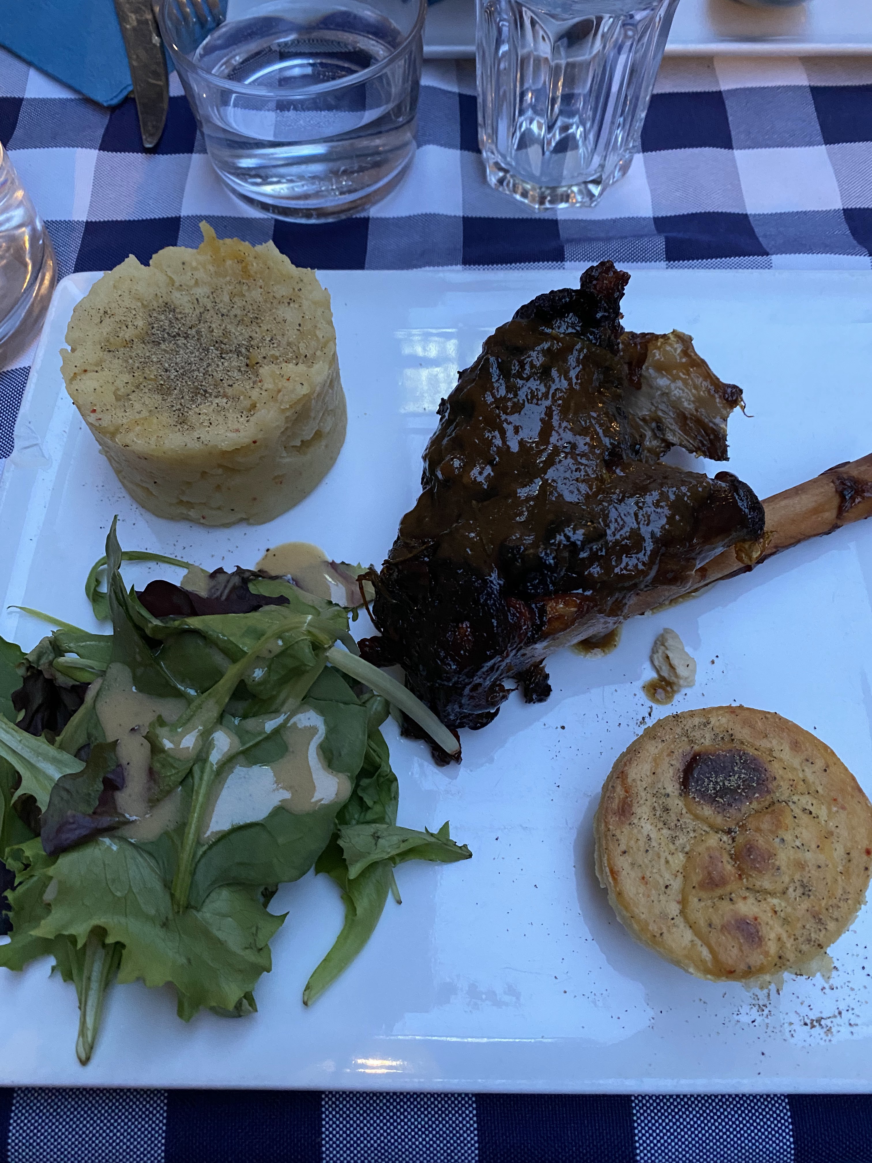 La nourriture était merveilleuse et délicieuse ! Nous avons eu le jarret d'agneau et le poisson. La soupe à l'oignon était également fantastique. Si vous êtes dans le coin, je vous recommande de dîner ici.