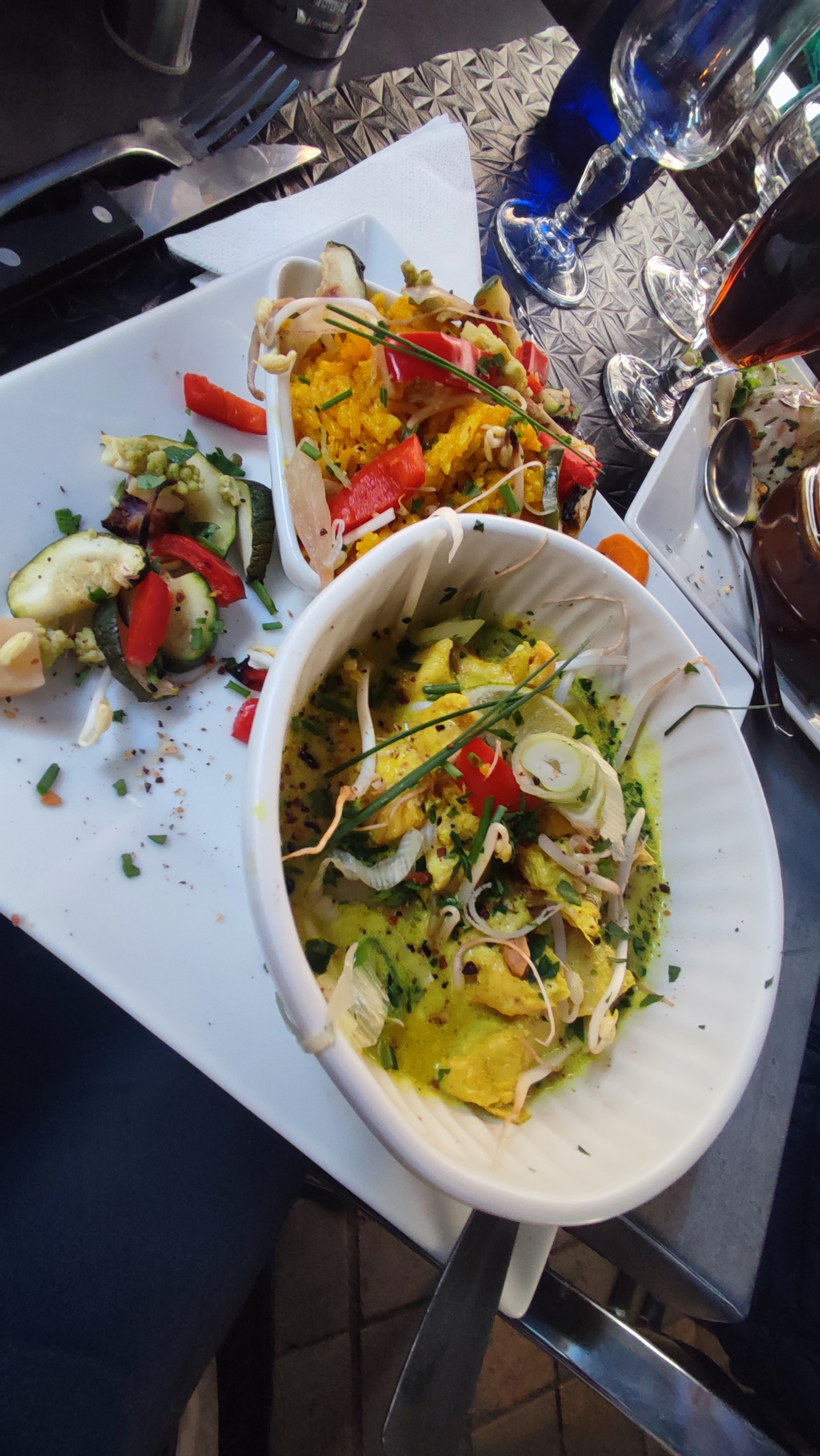 Accueil chaleureux et attentionné. Service rapide après avoir nous avoir demandé si nous étions pressés ou non . Délicate attention . Nous avons appréciés le repas du jour qui était un curry jaune de poulet accompagné de nouilles de riz aux légumes, graines de sésames, gingembre et cacahuètes . Et pour la fin un petit dessert d’une carte bien fournie et qui donnerai presque envie de goûter à tout ! Merci de cet endroit agréable et professionnel mais aussi d’une courtoisie rare.