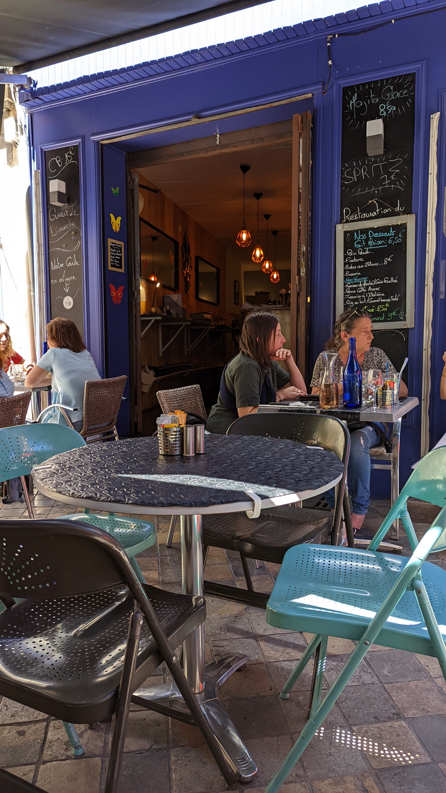 Terrasse avec brumisateurs super ! La salade du jour était excellente ainsi que les tartes un vrai régale. Manger sain et à bon prix dans un lieu agréable. Le messieur avec les tatouages sur les bras est très gentil. Je recommande ! Beaucoup mieux que les restaurants sur le port !