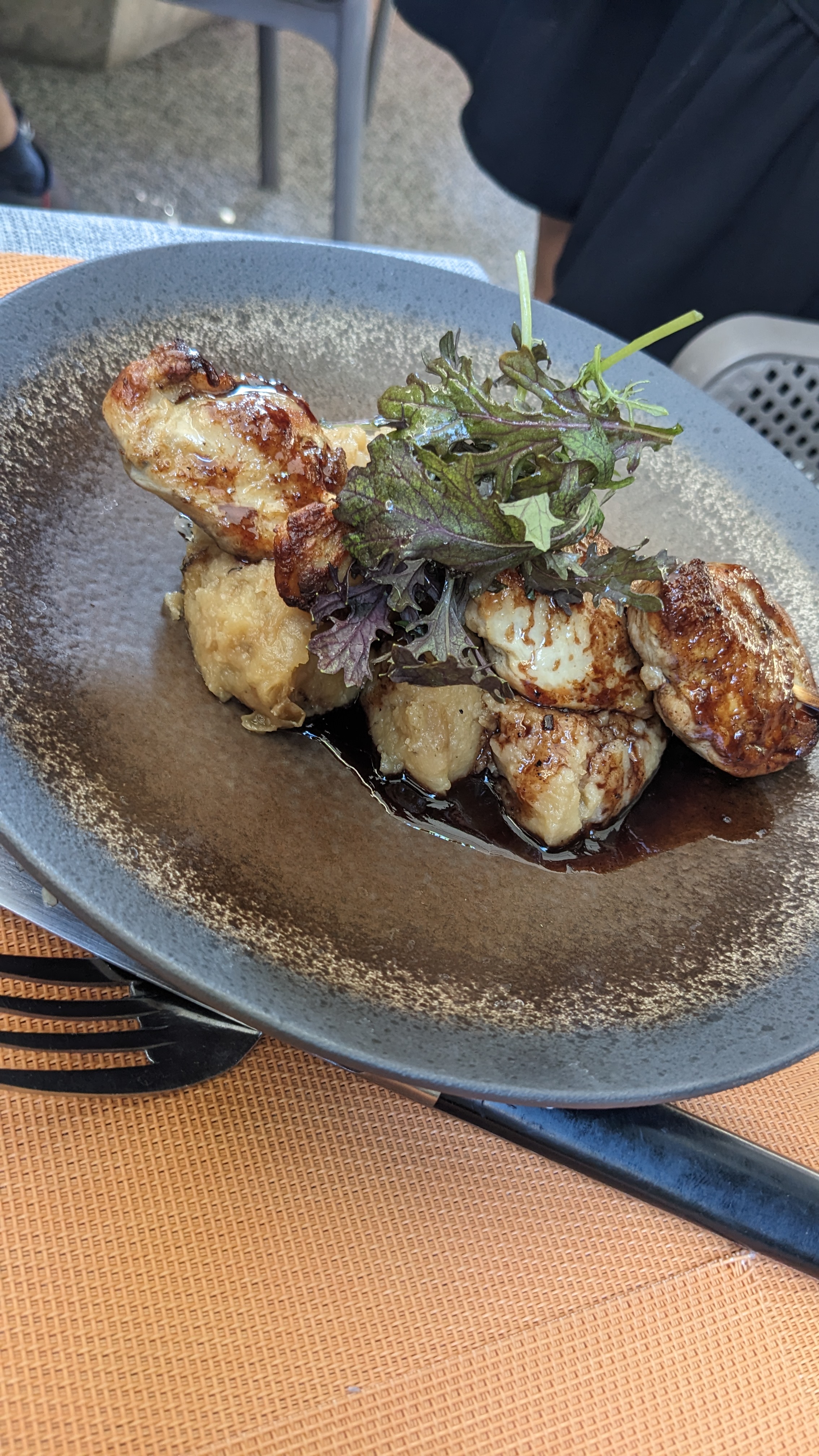 Une delice je ne peux que dire du bien de ce restaurant le service est impeccable chaleureux .