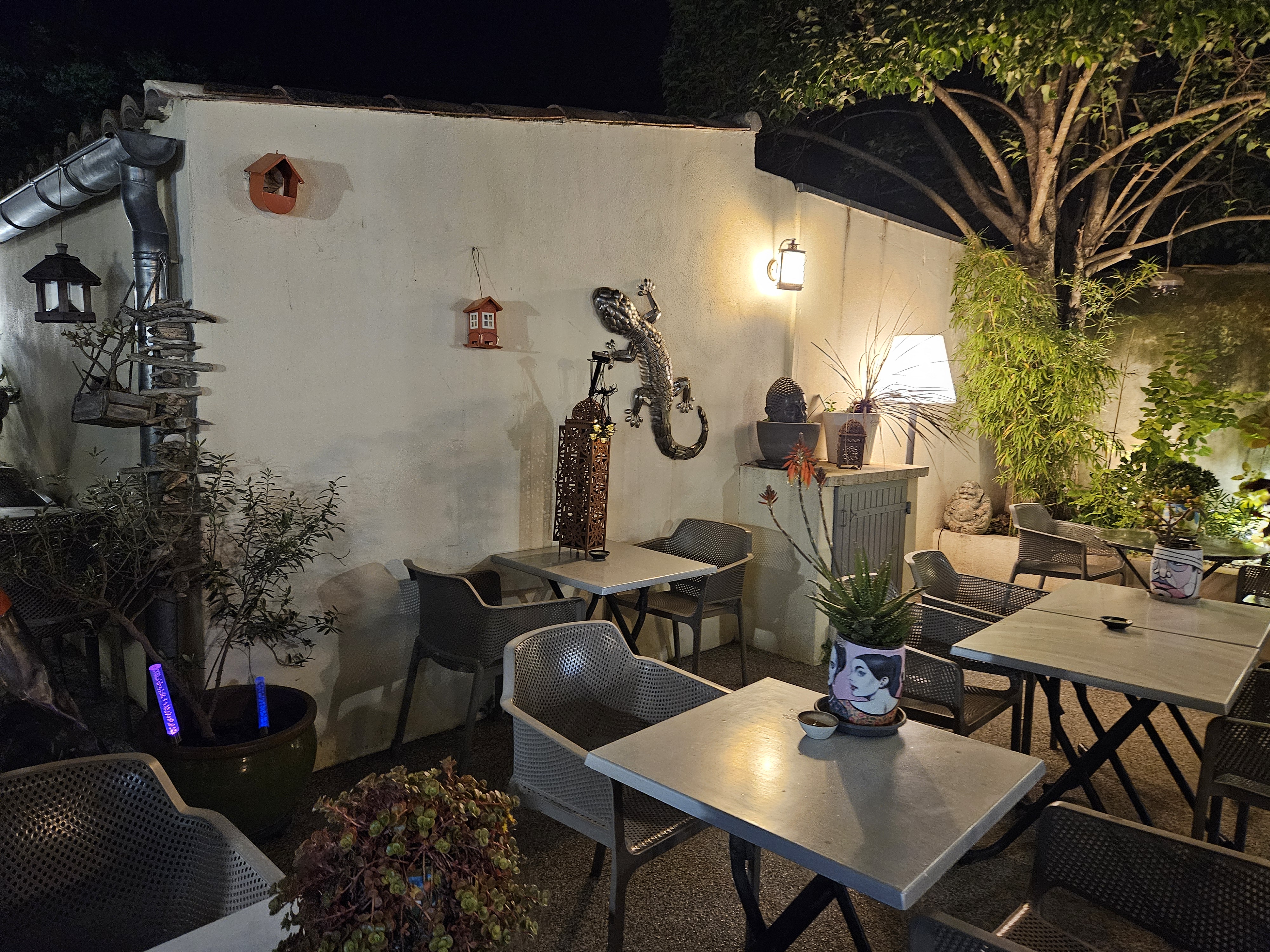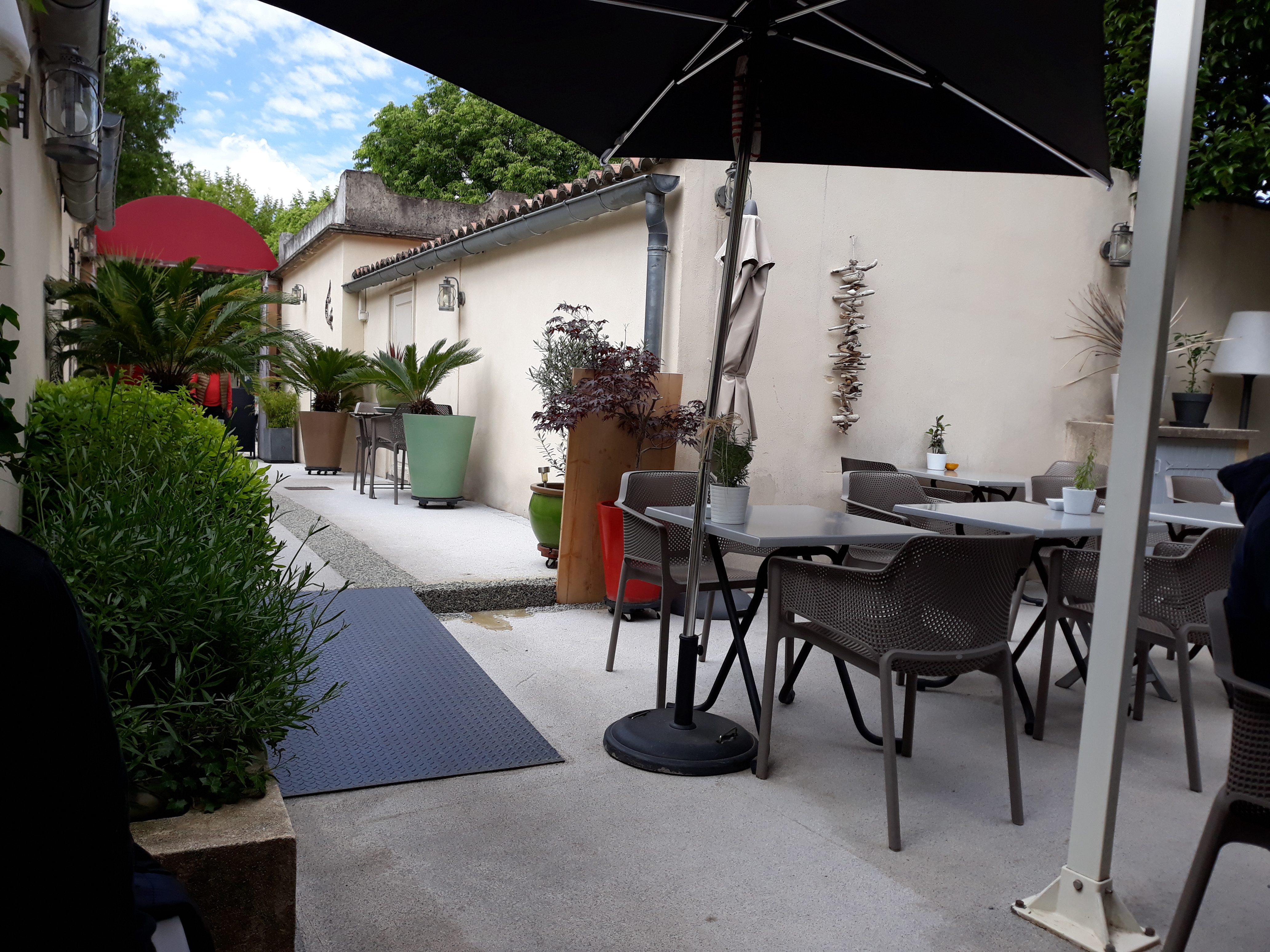 Ambiance feutrée et calme malgré que nous sommes en plein centre ville d'orange. Excellente cuisine, service parfait .