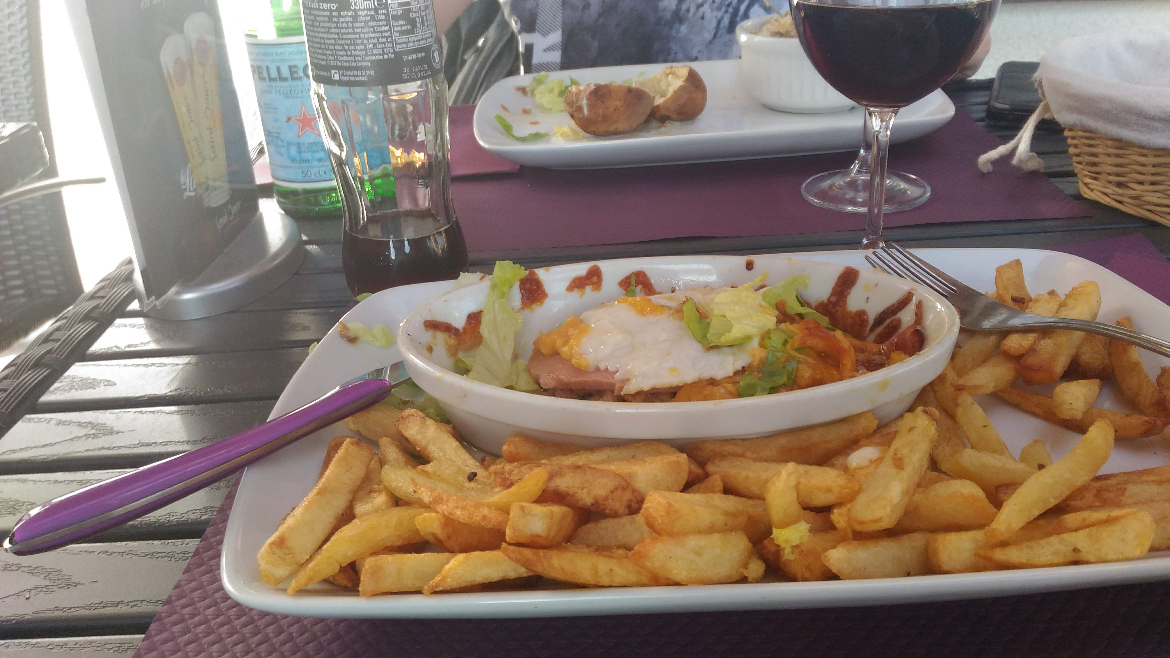 Très très décevant !!!!! Menu à 15,50 € tout compris, ce qui était plus que correct, donc ça s'annonçait bien. Mais 2 heures, à table pour manger : 2 rondelles de chèvre sur 2 feuilles de salade fanées, du veau marengo (devrais je dire du gras autour d'un os) + des frites qui ont du être cuites dans une huile datant de plusieurs mois, IMMONDE !!!!!!!! Gâteau décongelé et coca chaud, puisque servi 45 mn en plein soleil (avant le plat que le plat arrive) Bref infect !! Immense déception. Et bien que mon assiette soit retournée pratiquement intacte en cuisine, pas le moindre petit geste commercial. A EVITER.