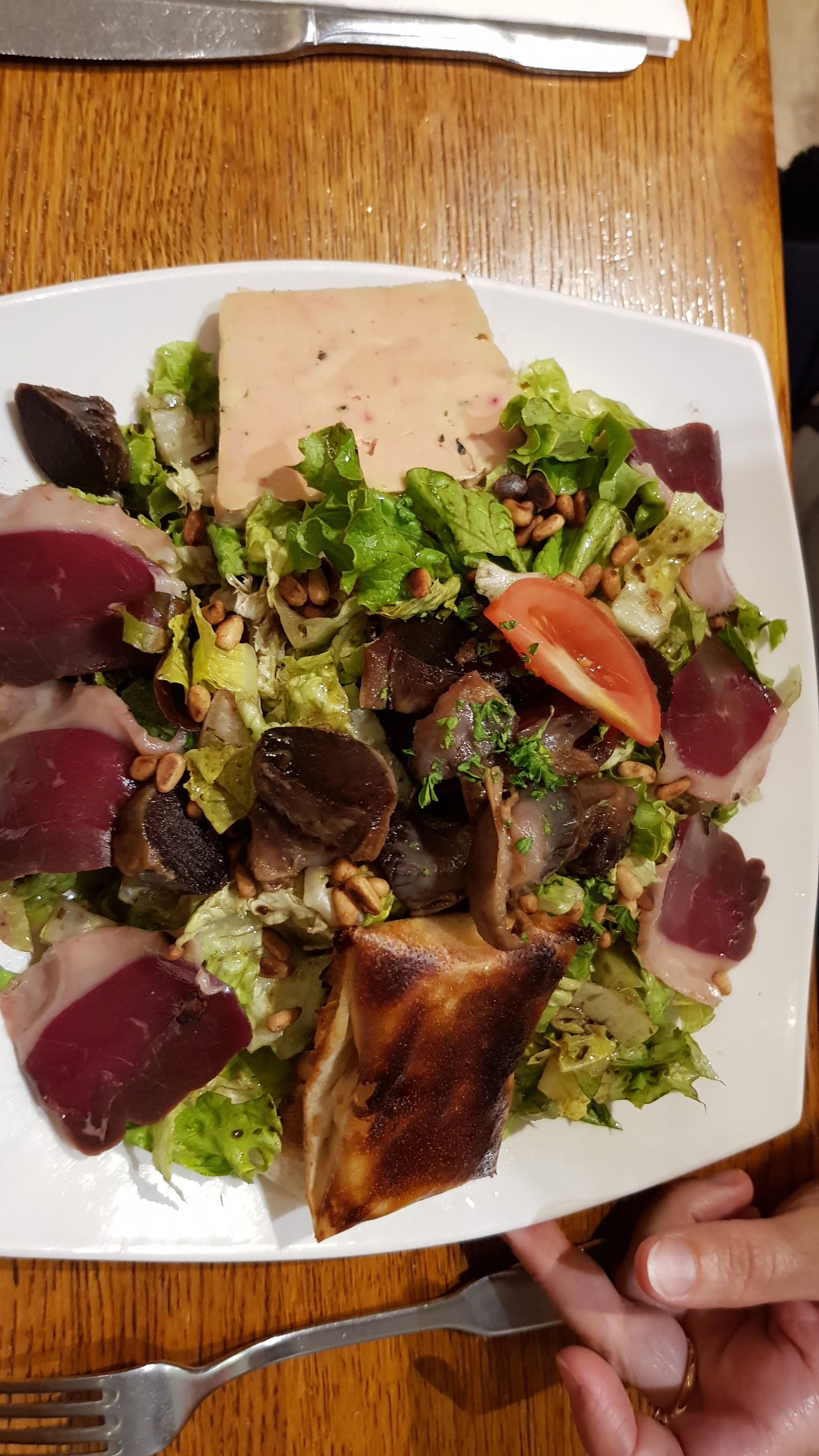 Bof... foie gras trop salé, confit sec, majorité des cèpes brûlés.