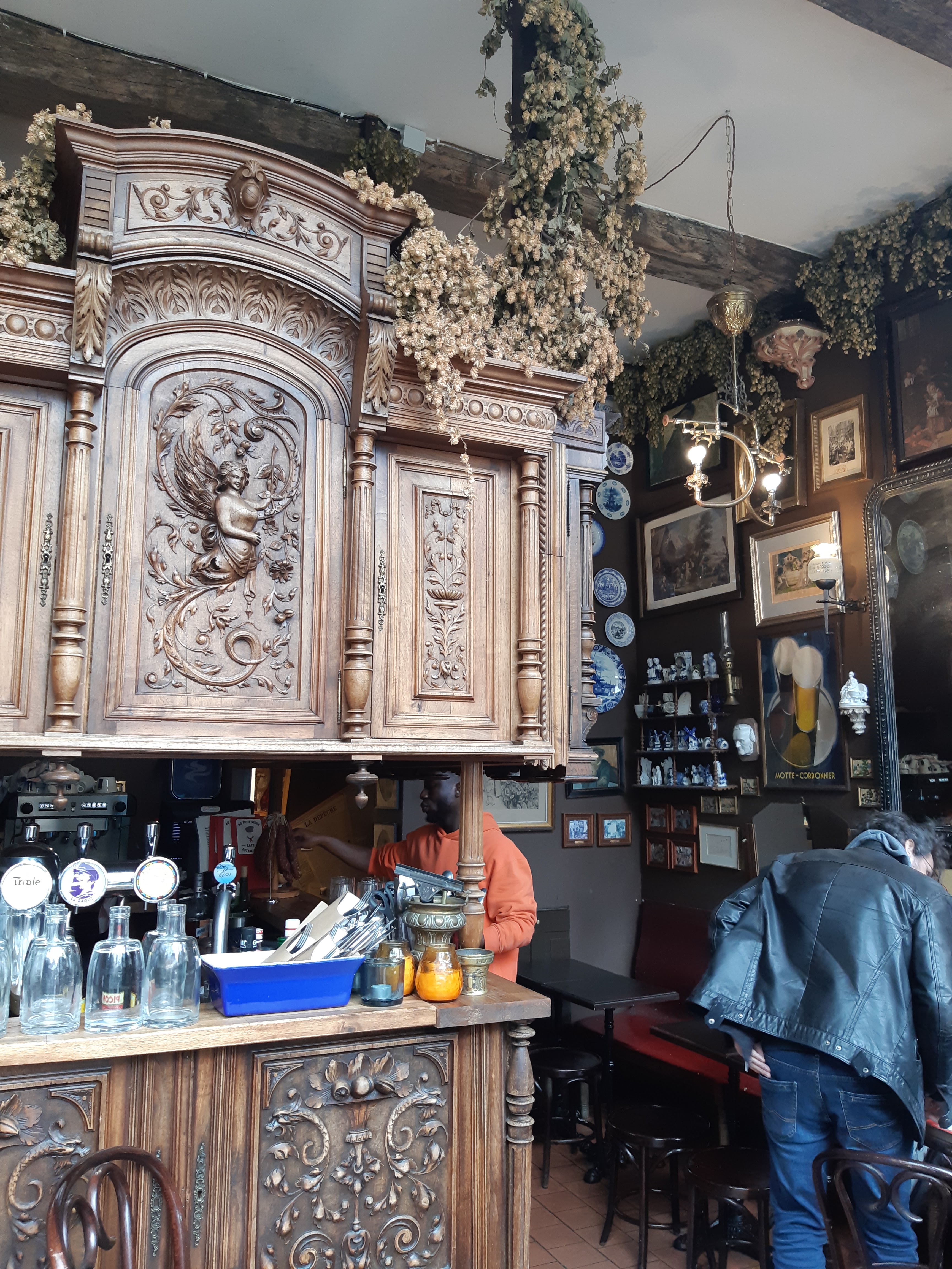 Charmé par ce bar original fait de vieux meubles Henri II, nous avons découvert un endroit atypique avec une équipe très accueillante et sympathique. La carte est restreinte car il ne propose que de la petite restauration mais nous avons apprécié le welsh au maroille, les cocktails à la bière et les différents shoots. Si vous voulez passer un bon moment, n'hésitez pas à pénétrer dans ce lieu unique, place aux oignons.