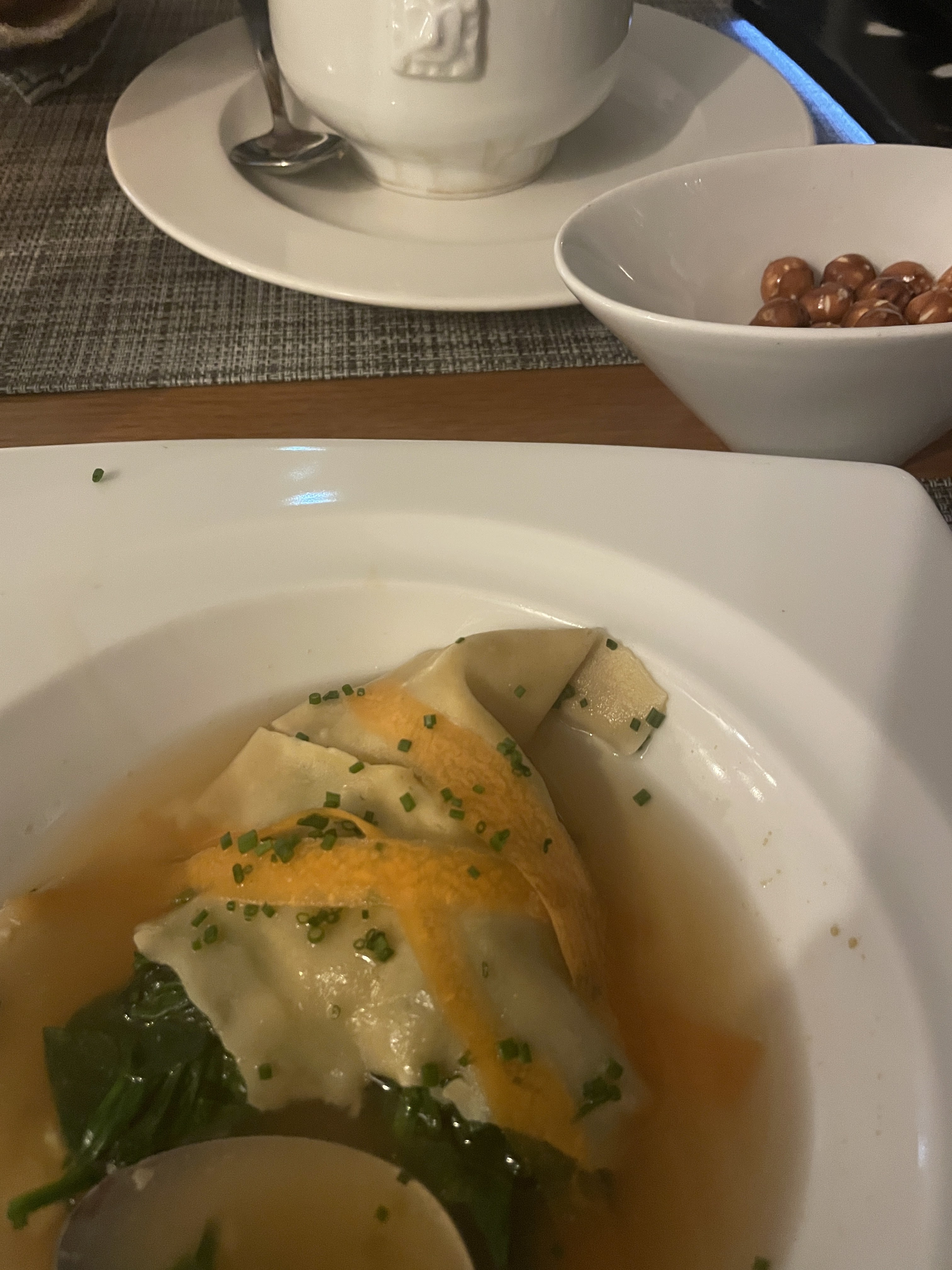 Une expérience très spéciale! Je marchais vers l'église et j'ai vu le restaurant. Il était rempli de monde, ce qui est vraiment un bon signe. Le propriétaire m'a chaleureusement accueilli et j'ai apprécié un délicieux déjeuner avec les ingrédients les plus frais. La soupe française était très savoureuse, les raviolis uniques et légers. La tarte au citron meringuée était divine. Je n’ai jamais eu de meringue aussi légère et paradisiaque auparavant. Je suis tellement content d'être tombé dessus par hasard !