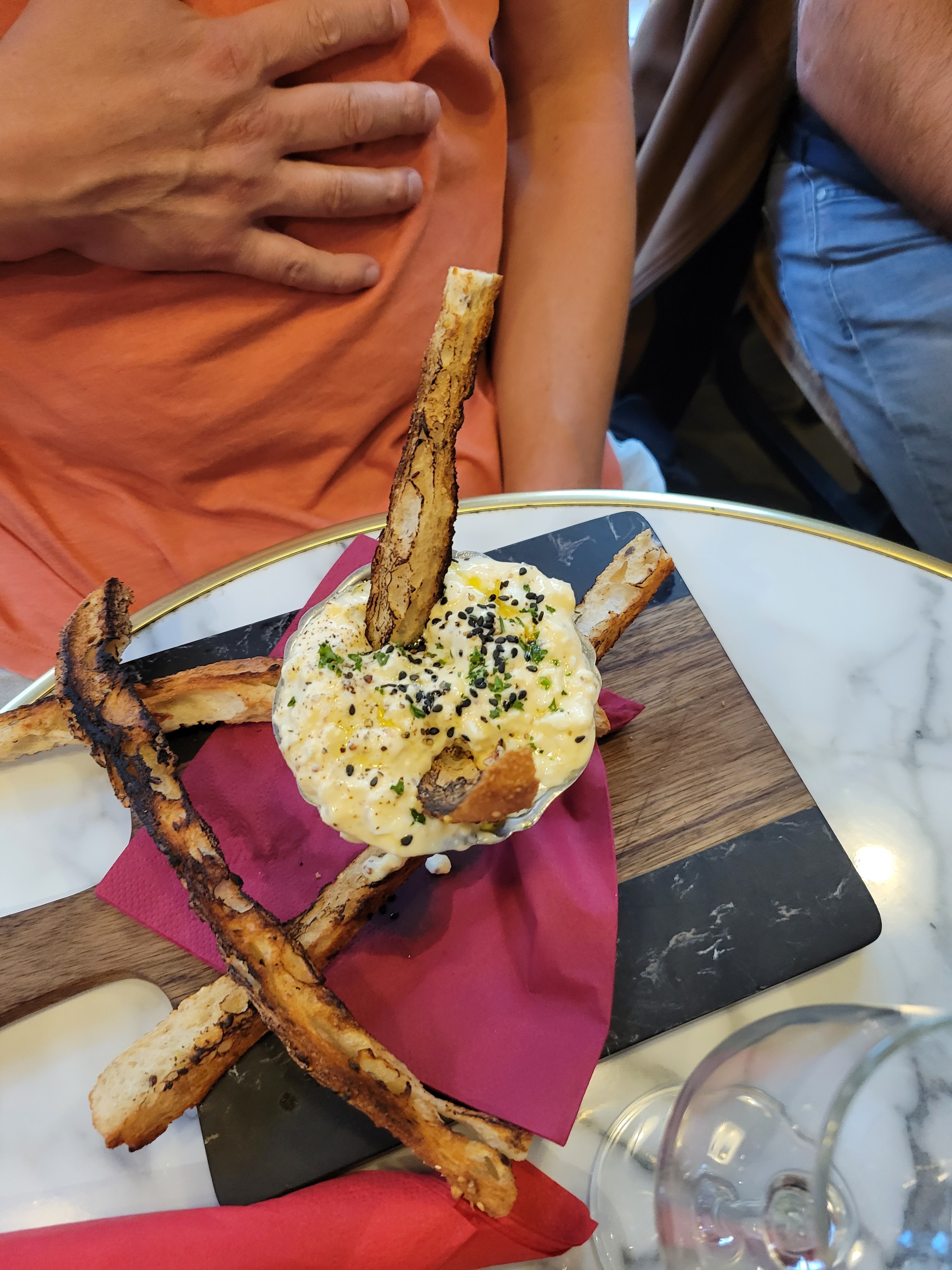 J'ai fonctionnée au pif en sortant de l'apéro du Balthazar et franchement.....quelle découverte 💗 Enfin sur rennes un restaurant qui sert une cuisine française bien de chez nous et maison. Nous avons mangées sur les tables hautes mais parfaitement bien adossées .au menu Os à moelle, rillette d'œuf truffé 🤪 ,blanquette de veau , andouillette de L' Argoat 😜et pain perdu caramel beurre salé. Félicitations au Chef Roro .Le tout servi avec le sourire, l'acceuil qu'il se doit et la musique années 80/disco de Dj bon entendeur ☺😉. Une adresse qui mérite de perdurer. Pensez à réserver. Nous reviendrons avec grand plaisir 🥰 Eva et Micheline