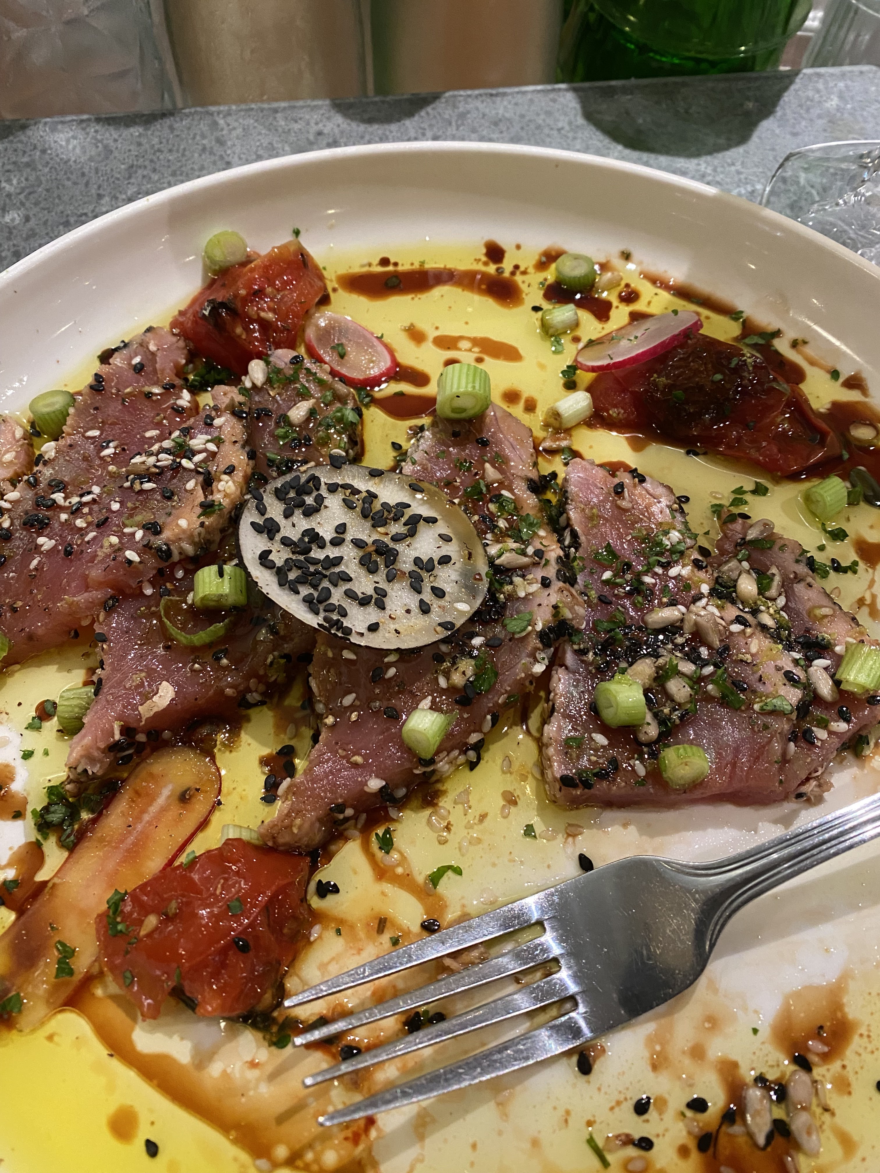 Nous y avons mangé ce samedi soir, les plats étaient délicieux mais c'était tellement bruyant dans le bar que cela m'a gâché le repas. J'avais hâte de terminer le repas, je suis repartie avec un mal de tête +++.