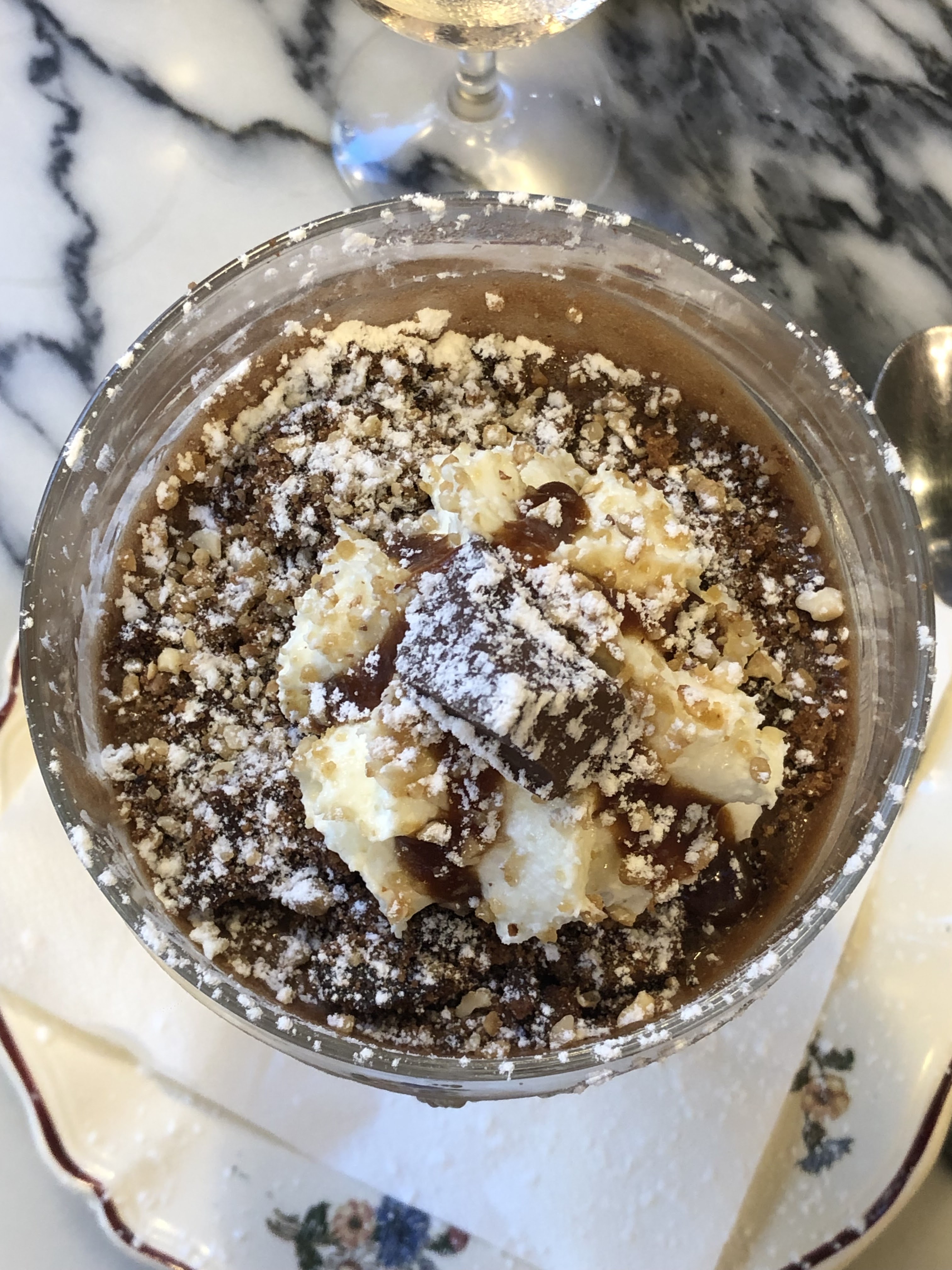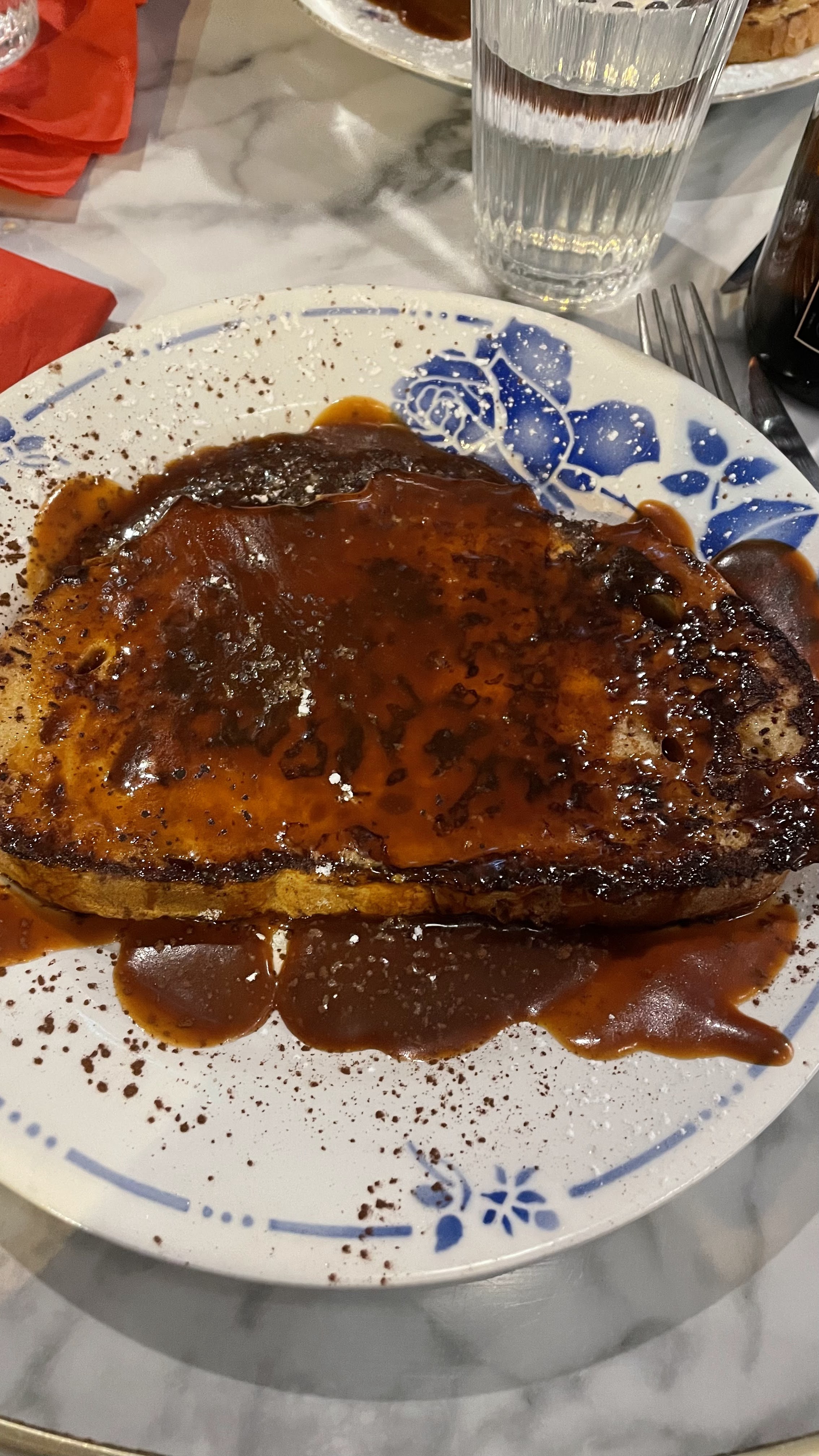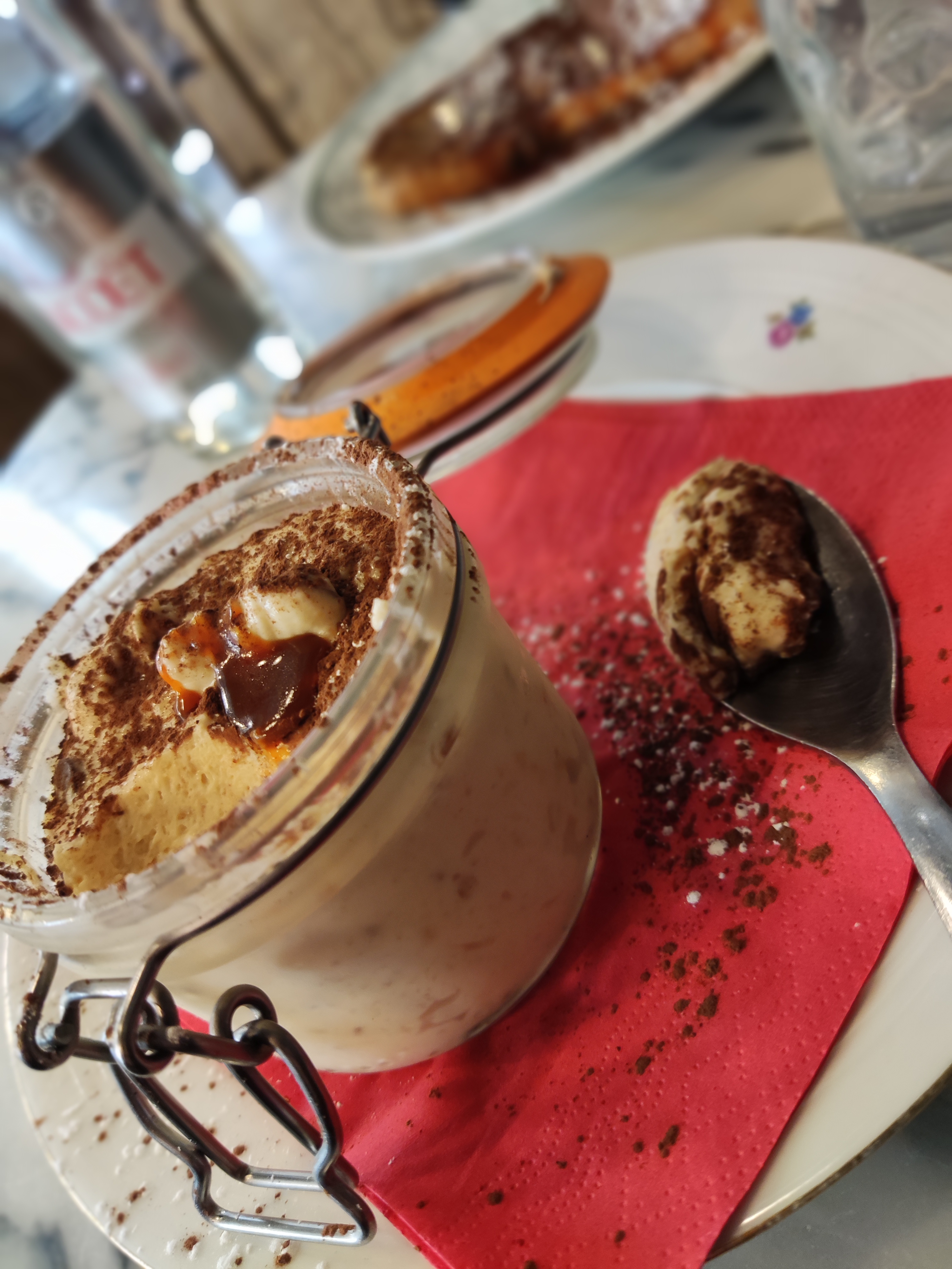 J’ai dîné au comptoir qui donne sur la rue. J’ai trouvé cela très sympa et cela change de mes habitudes. Le gaspacho est excellent. Pour le dessert, la serveuse me conseille le flan mais j’aimerai goûter le pain perdu. Du coup, j’ai commandé les deux 😄Il faudra attendre un peu pour avoir mon avis…Miammmm