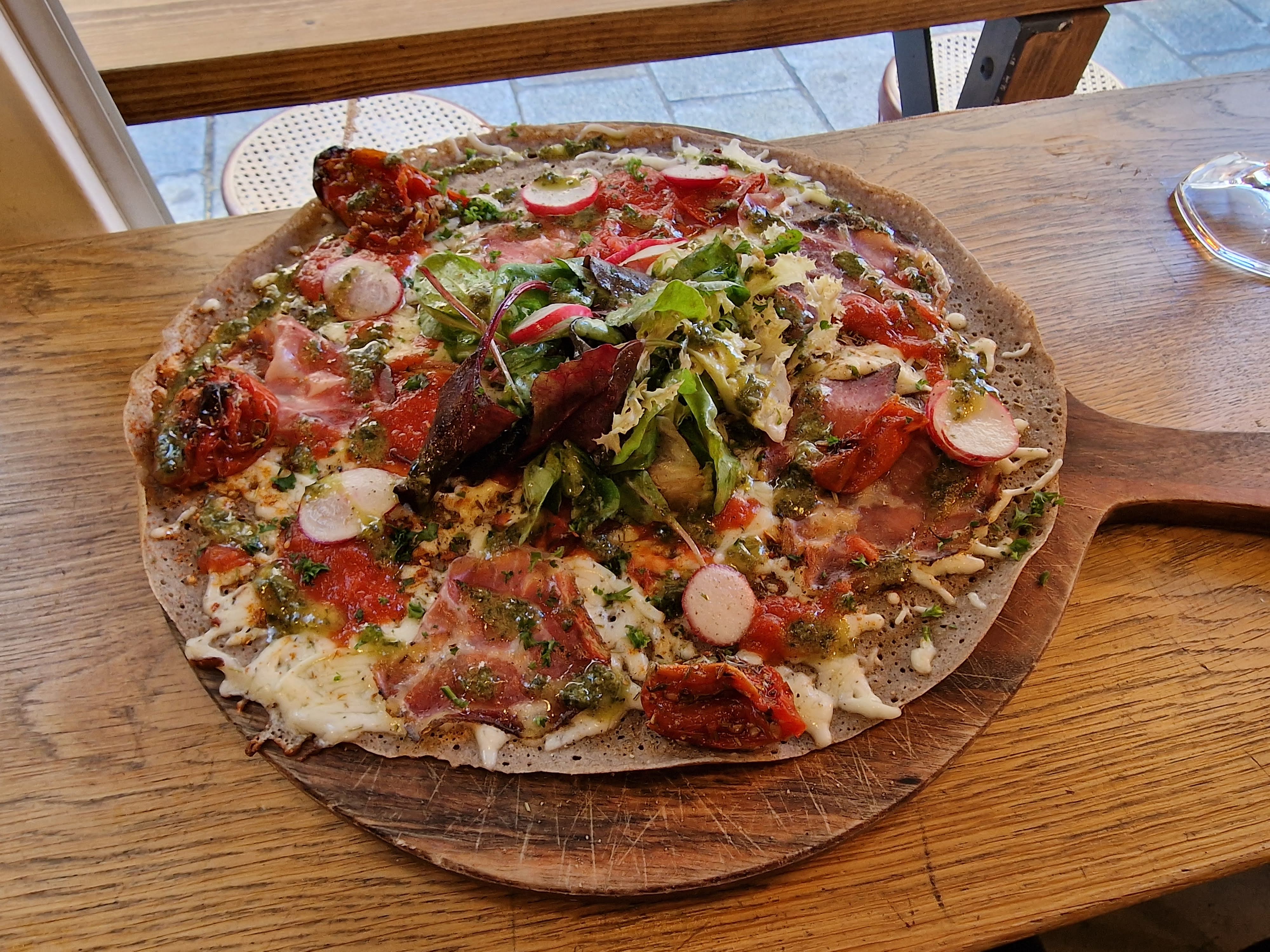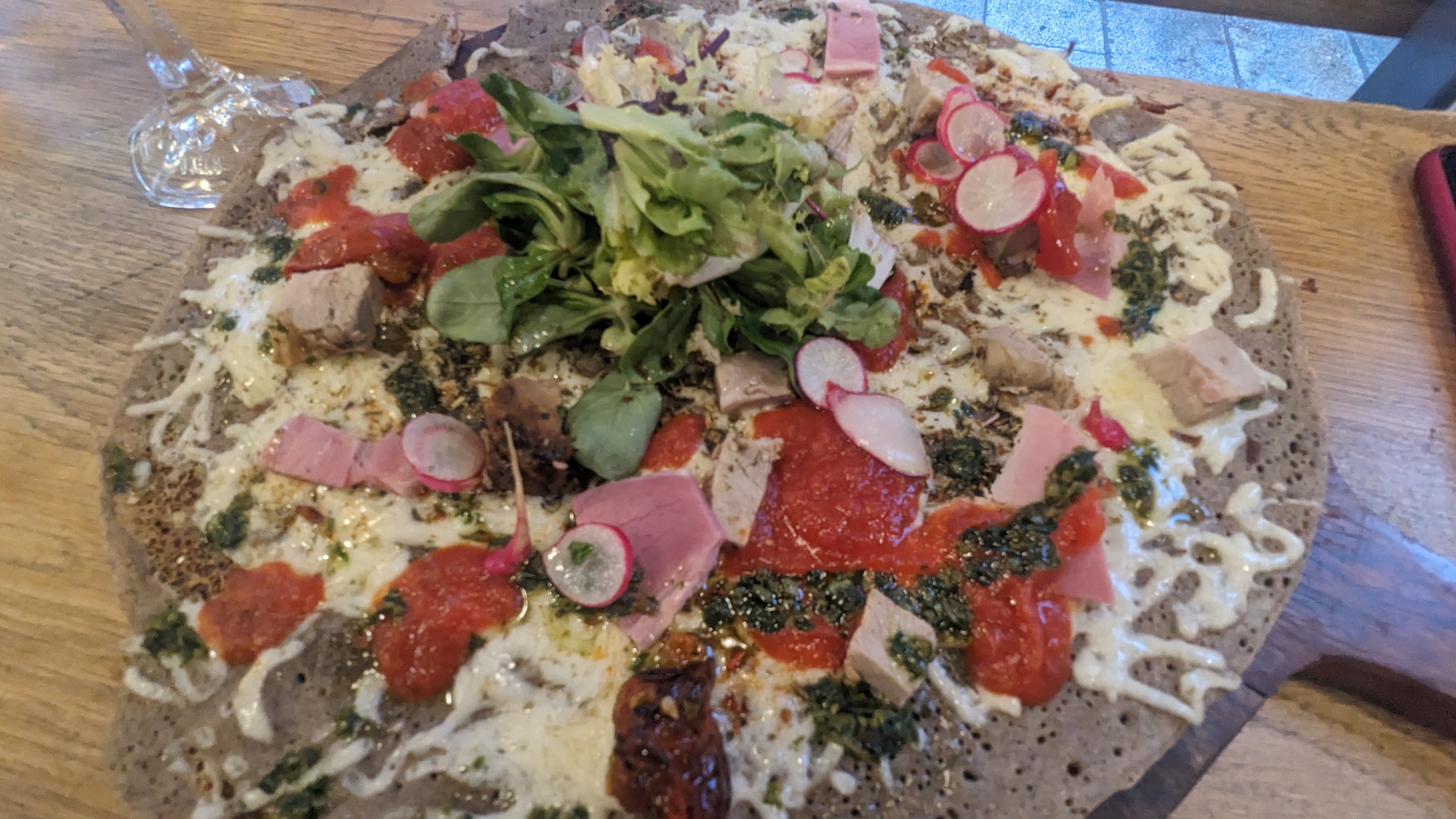 Une bonne brasserie avec de bons plats. La crêpe-pizza était originale et excellente. Toutes les saveurs se sentent bien