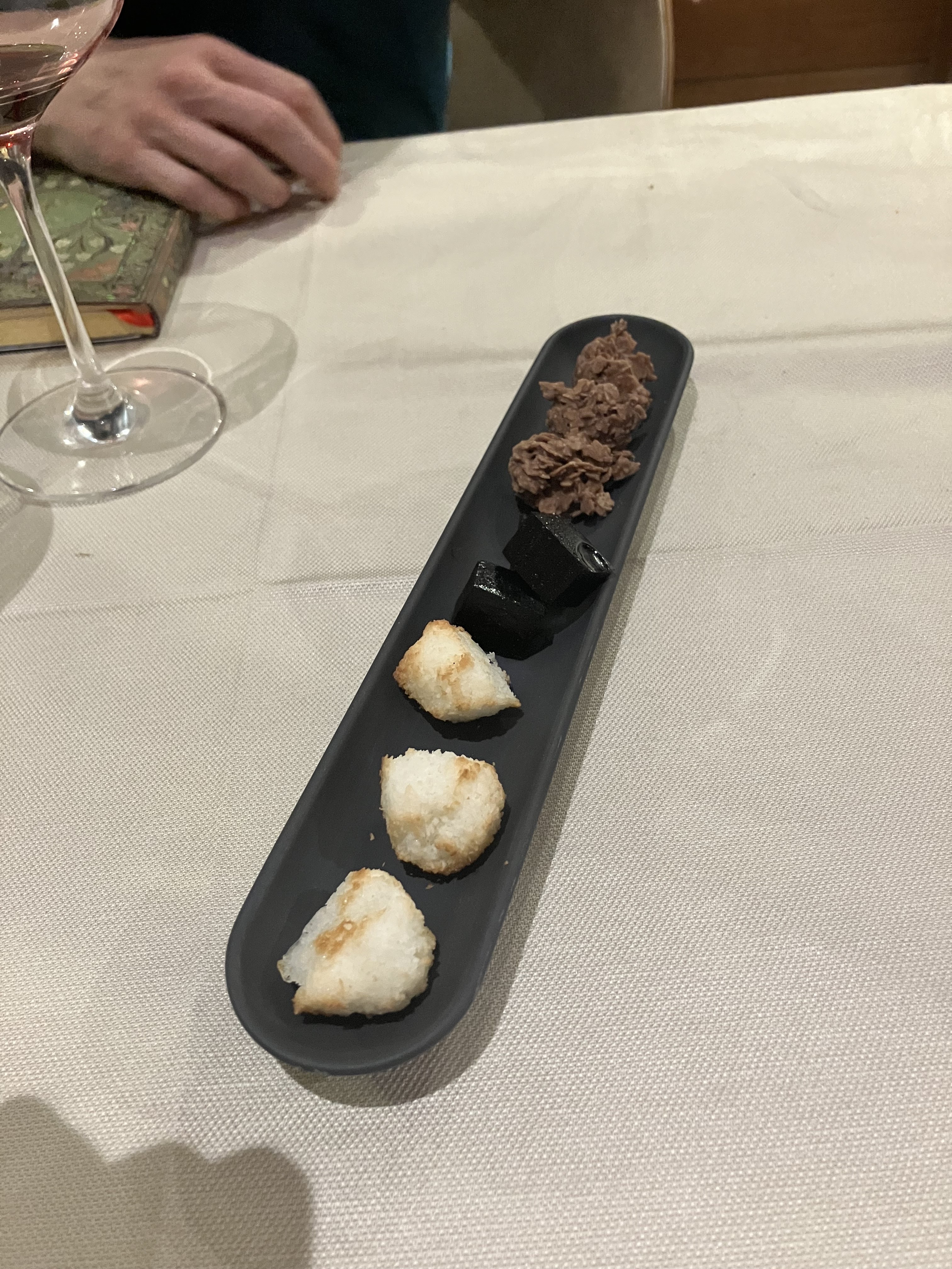 Excellent service, menu globalement assez réfléchi. Il y avait le poisson du jour qui était servi avec du chorizo, ce qui, je ne pense pas, allait vraiment bien avec. Le chorizo ne complimentait pas le poisson, et c'était du chorizo assez bon marché que l'on pouvait acheter pré-tranché chez Carrefour. Cela n'a pas affecté l'expérience! Un excellent vin et un serveur super sympa l'ont vraiment apporté comme une expérience formidable.