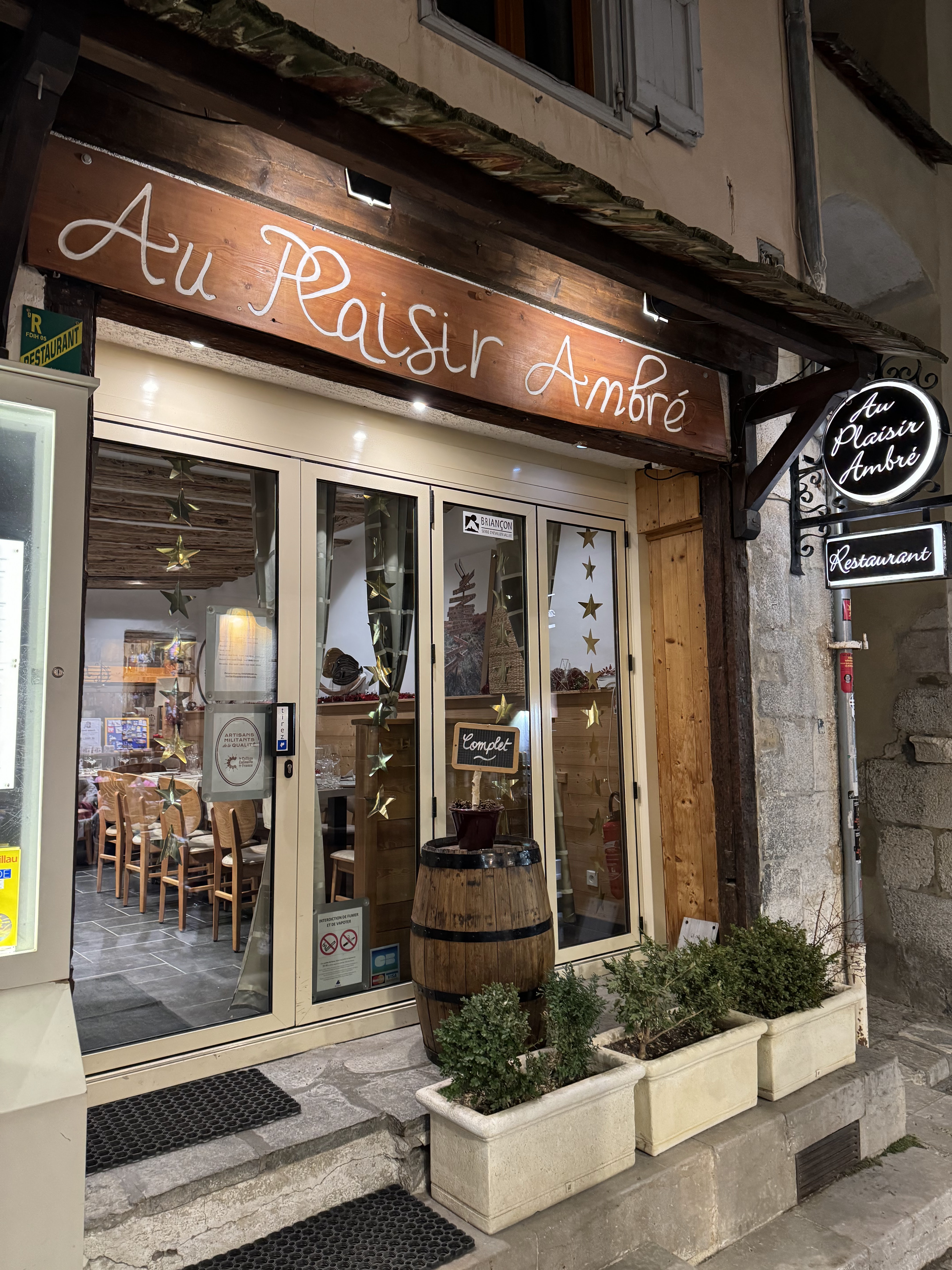 Simplement Incontournable ! Accueil chaleureux et sans chichis, cadre très agréable, plein les mirettes et explosion de saveurs dans les assiettes... Petit coucou du chef a la fin du service, ça fait plaisir ! Entre une simple fondue ou une raclette a 25/28€ et un voyage culinaire (entrée-plat-dessert) au Plaisir Ambré... Aucune hésitation !