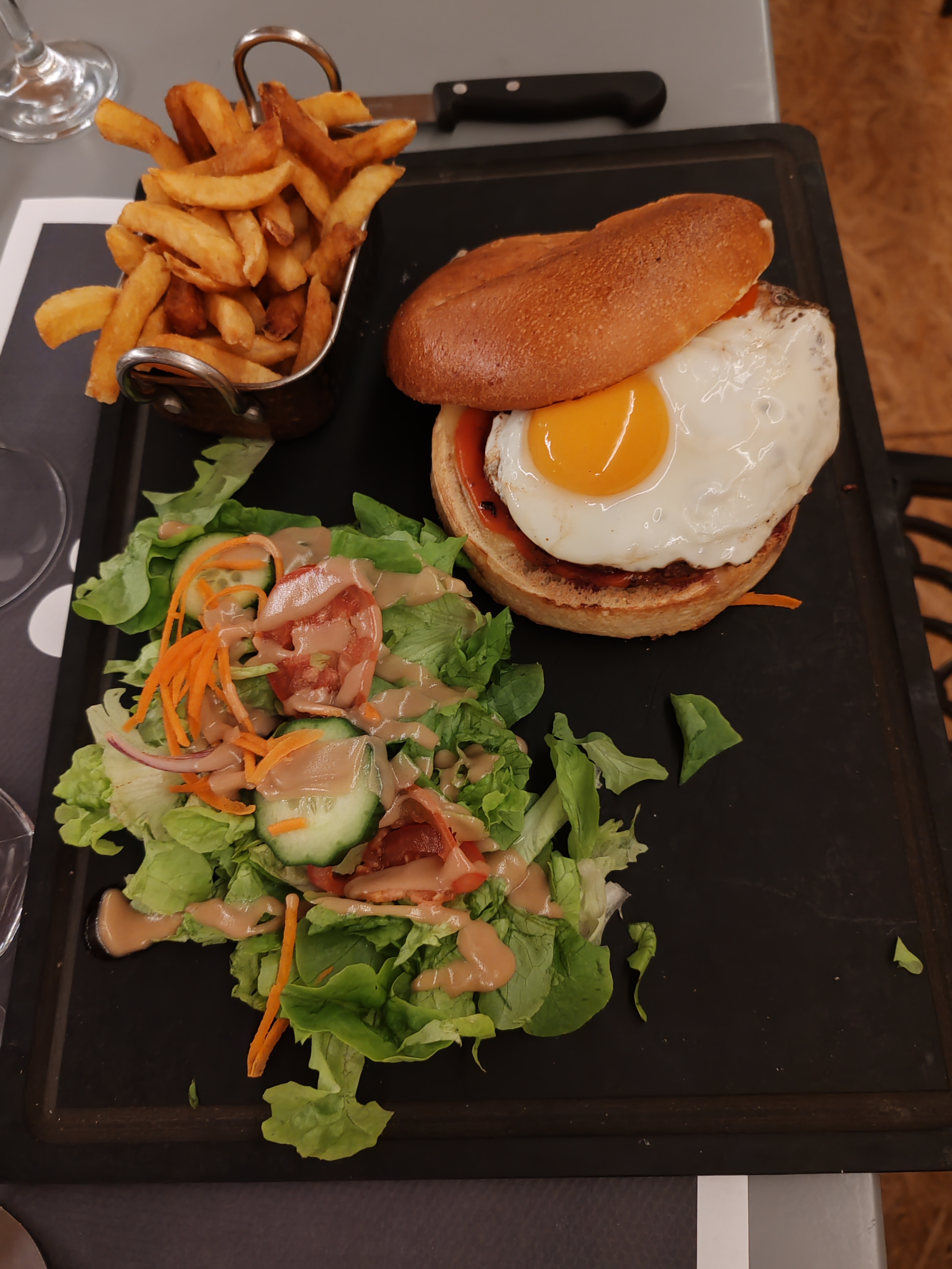 Superbe découverte ! Accueil parfait, nous sommes venus avec un bébé de 2 mois et un enfant de 10 ans. Notre fils a mangé une énorme et excellente pizza selon lui, et petit bébé était parfaitement installée à table avec nous, avec sa poussette, grâce à la gentillesse du personnel, important pour permettre aux parents de profiter du moment. La cuisine est excellente ! Le burger Rossini, l'onglet, et les escargots en entrée, les desserts maison, parfait. Mais la palme d'or revient au chef qui a préparé ce merveilleux foie gras maison. La tranche est déjà bien généreuse mais absolument délicieuse ! Je n'ai pas pu m'empêcher de le féliciter personnellement et de lui faire une bise. Sincèrement le meilleur foie gras que j'ai goûté de ma vie ! Nous reviendrons avec grand plaisir, car en plus, l'équipe est sympa. A bientôt, Aurélie, Romain, Alexis et Louise.