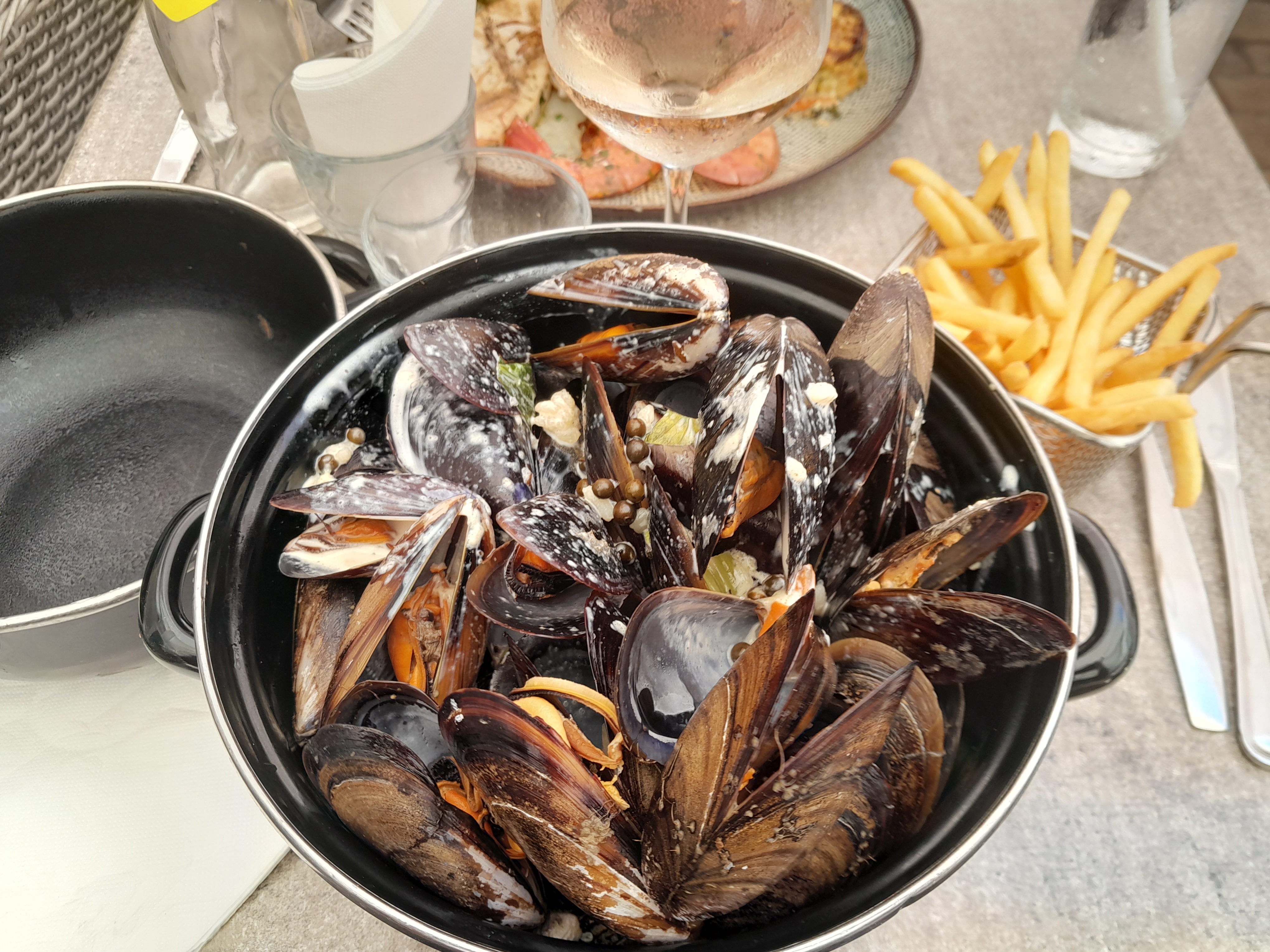 Ma compagne et moi-même se sont régalés. Spaghetti crème et palourdes et moules frites. Extra ! Si en pleine saison, c'est aussi bien qu'aujourd'hui, je recommande. Ambiance tranquille et terrasse au soleil au bord du canal Tout est bien en place Tarif pour nos 2 plats + 1 verre de vin rosé et 1 icetea : 38 euros