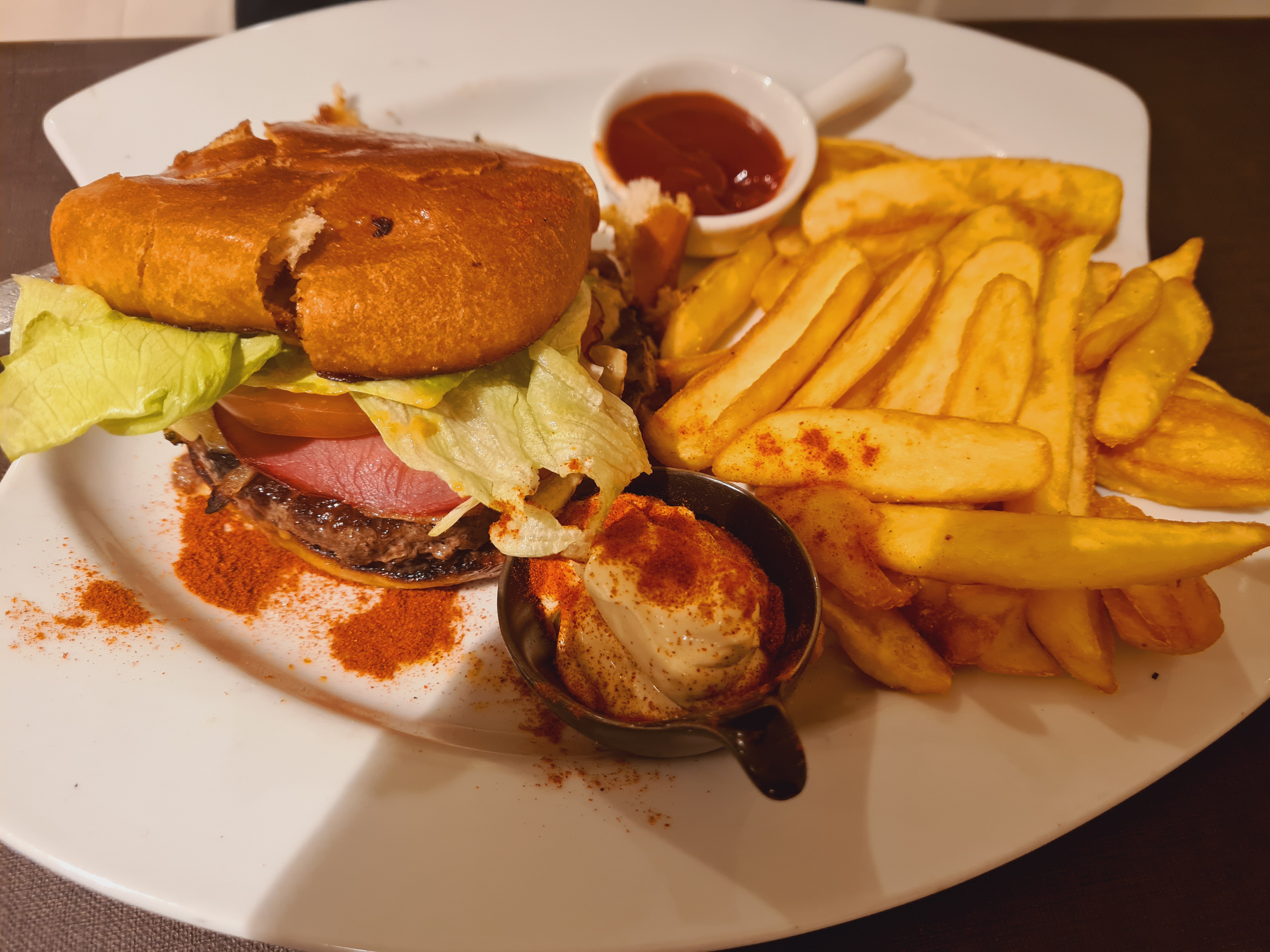 Bon expérience. Commande livré a domicile durant le confinement. Plat choisi, Burger boeuf + frites. Très bon, viande avec un bon goût de fumé. Dessert tiramisu Nutella ! Je recommande 👍