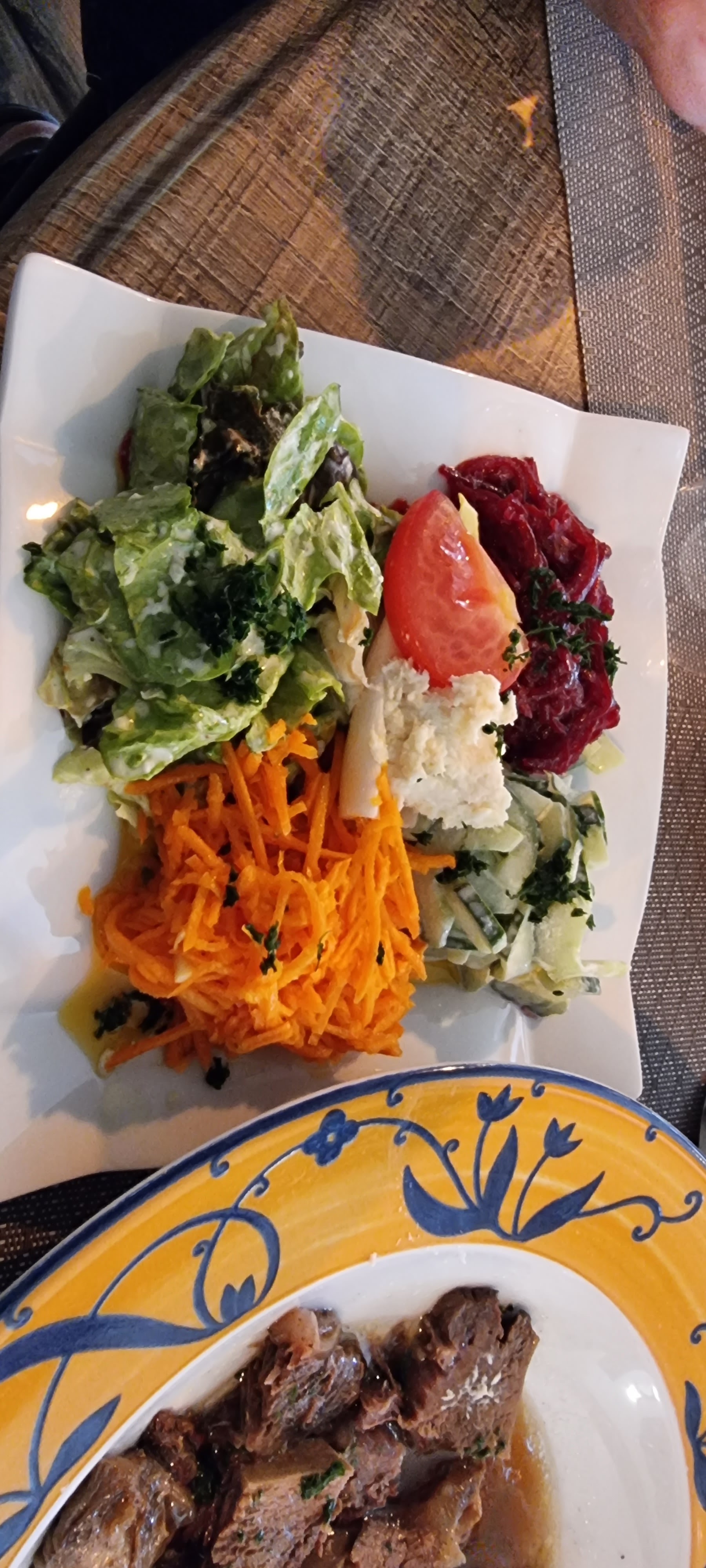 Accueil chaleureux et service au top. Bœuf au sel très bon et très copieux, pot au feu très belle assiette petit bémol pour moi mes légumes n'étaient pas assez cuits, ce qui n'enlève rien au goût