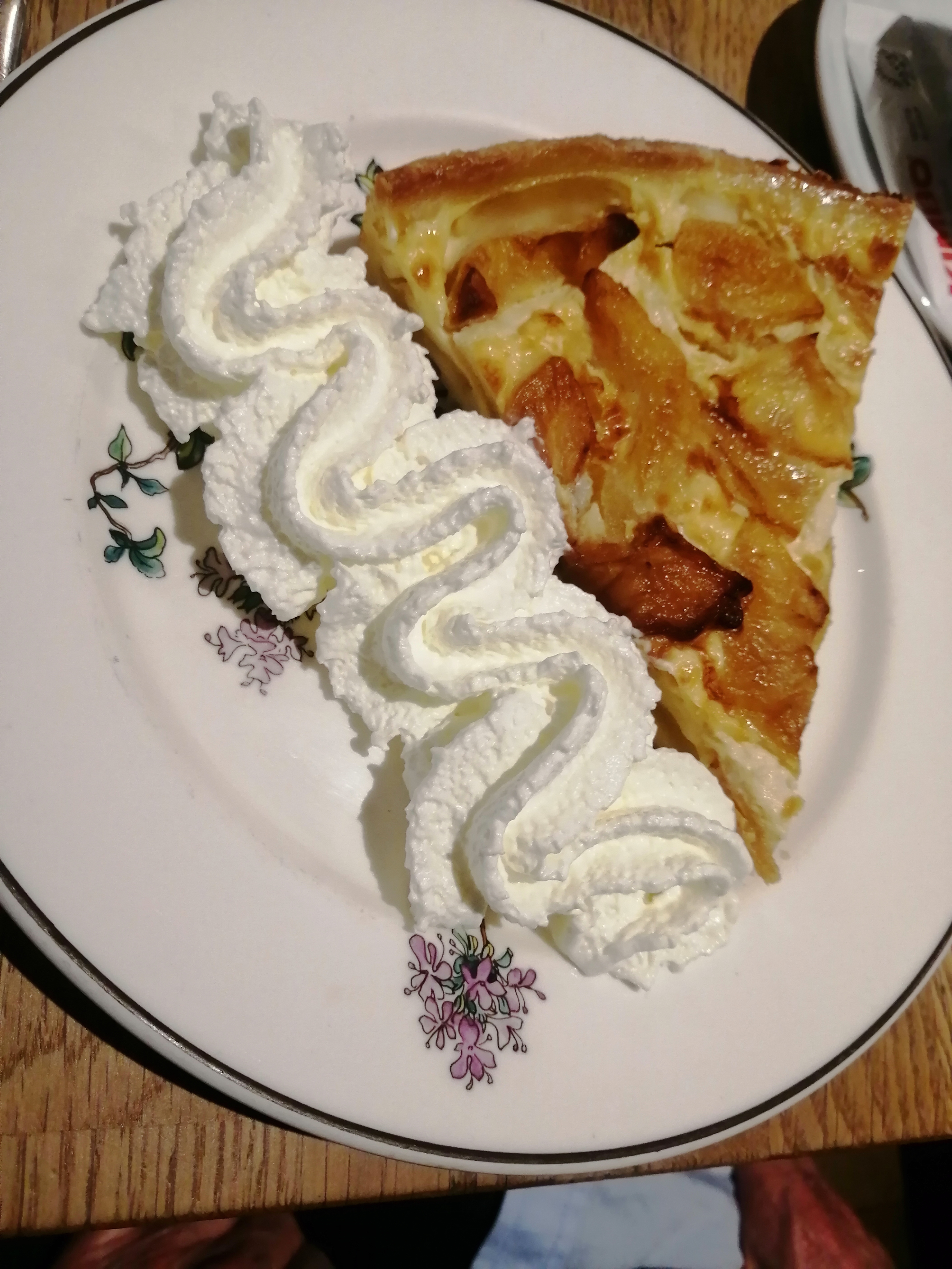 Frigorifiée, j'ai été froidement accueillie en plein rush. Je me suis installée dehors et j'ai attendue trop longtps qu'on vienne me prendre ma commande de dessert/thé. Bonne flammekueche chèvre. Les personnes nbreuses et étrangères ont été bcp mieux accueillies, on leur a proposé une place à l'intérieur au chaud. Nourriture peu adapté aux végétariens.