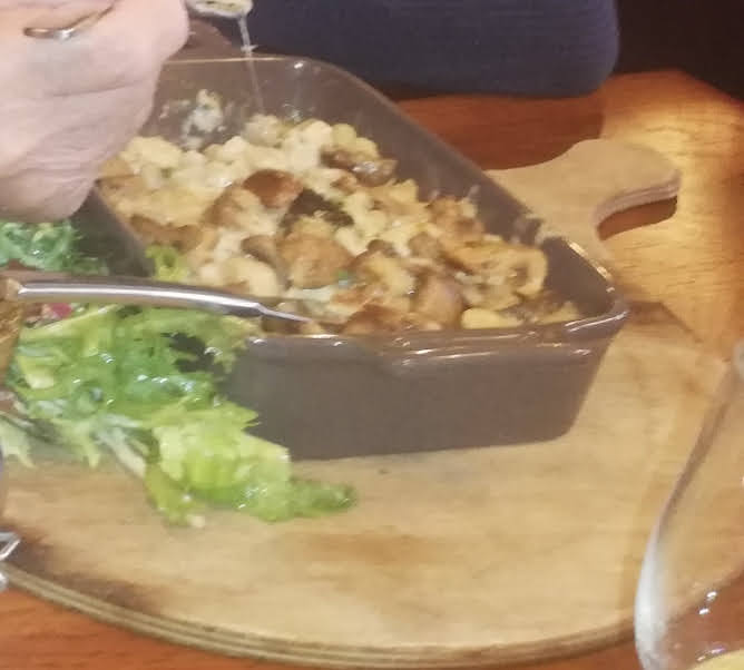 Service : les 4 membres du personnel étaient très agréables. Ils parlaient bien anglais et parfois français mais au final tout était compris. Nourriture : portions énormes. Nous avons commandé Les Welsh qui est un plat profond avec du pain et des montagnes de fromage Munster sur le dessus et des frites superbes. La fille au t-shirt c'est très chic. Très belle