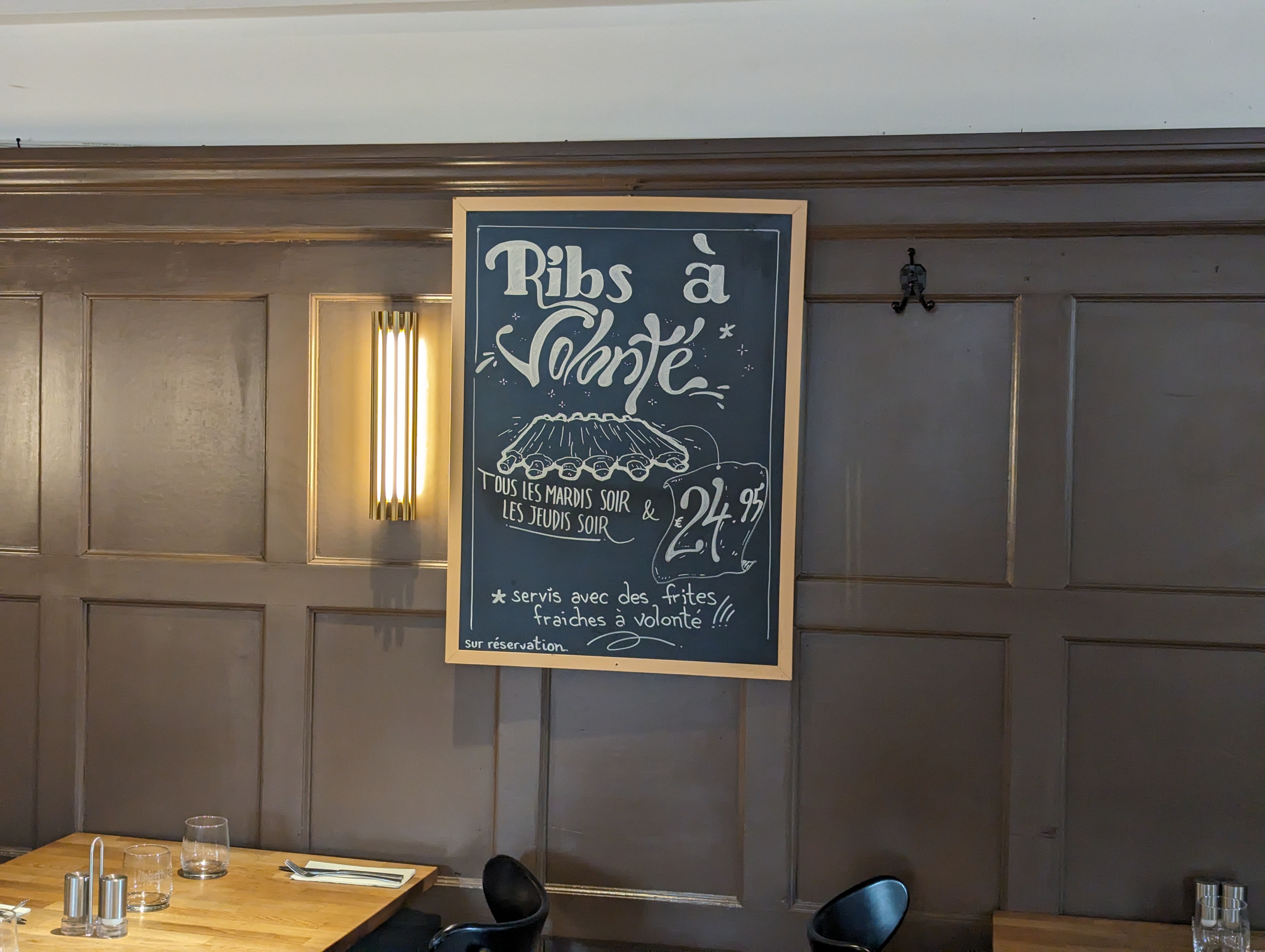 Nous sommes venus pour les ribs à volonté et n'avons pas été déçu ! Bons ribs pour le prix, frites fraîches excellentes et sauce barbecue maison délicieuse !