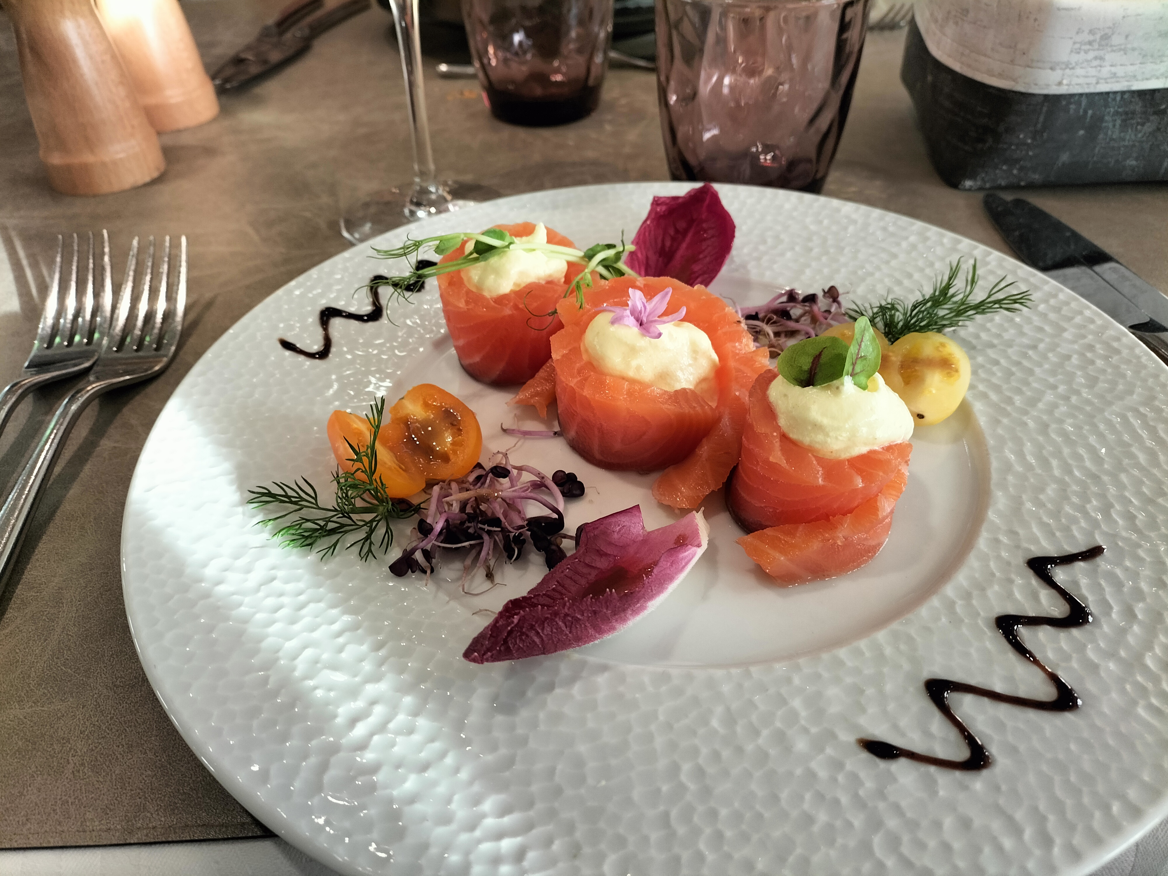 Très bon accueil, personnel agréable et souriant, repas délicieux avec une mise ne bouche offerte qui met réellement en bouche, prix à la hauteur du plat servis. Petite photo des assiettes don le dessert où j'avais oublié de prendre la photo avant de commencer à manger.
