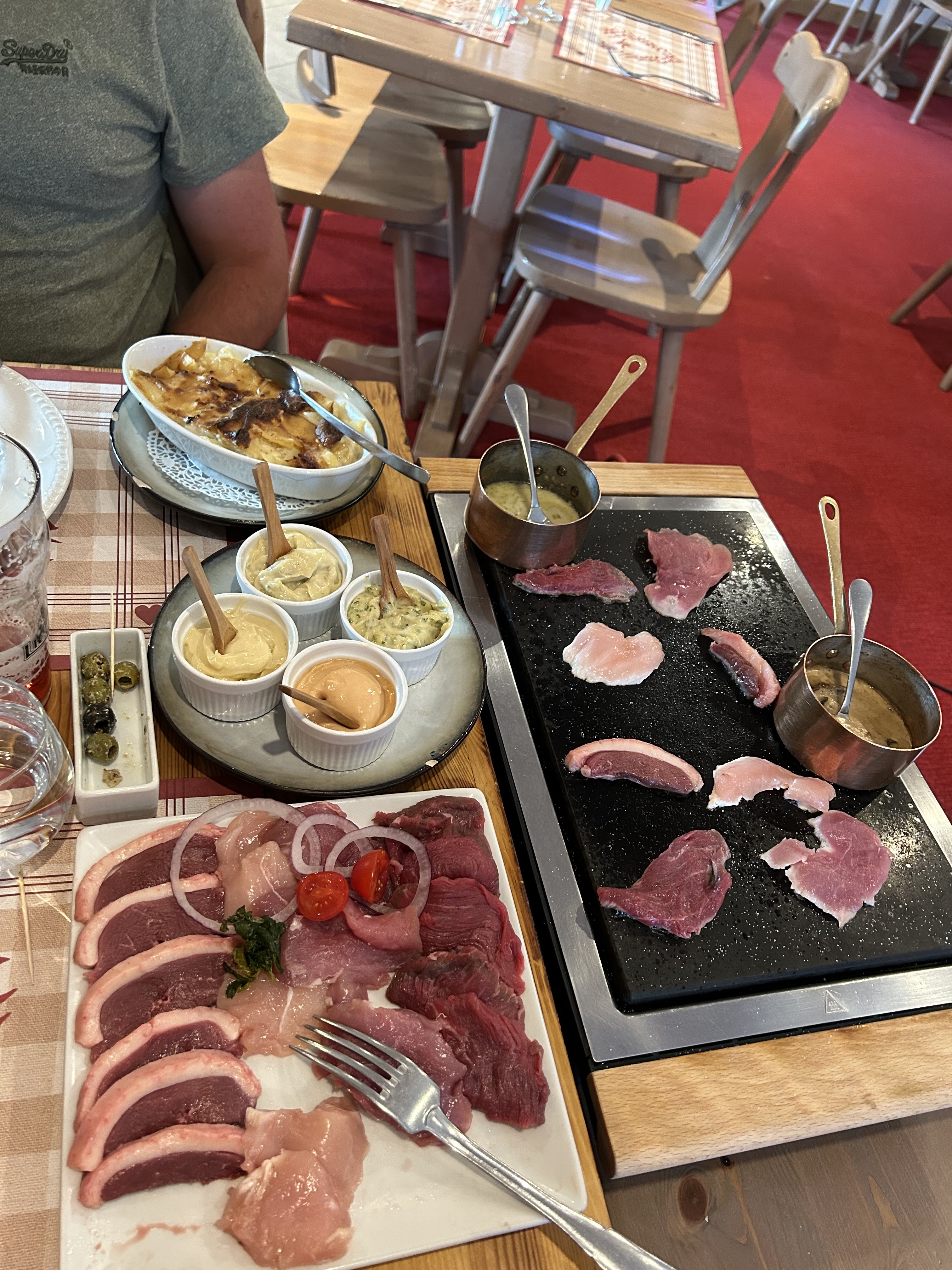 Il avait été demandé de faire une réservation pour les spécialistes montagnards ce que nous avons fait. Lors de la commande on nous annonce qu'il n'y a plus de machine du coup obligé de changer de menu. Nous avons failli avoir le plat avant l'entrée. Dommage car la quantité y est, le décor également mais le personnel est à revoir surtout ne pas être presse s'il manque quelque chose à la table car aucuns ne vous regarde