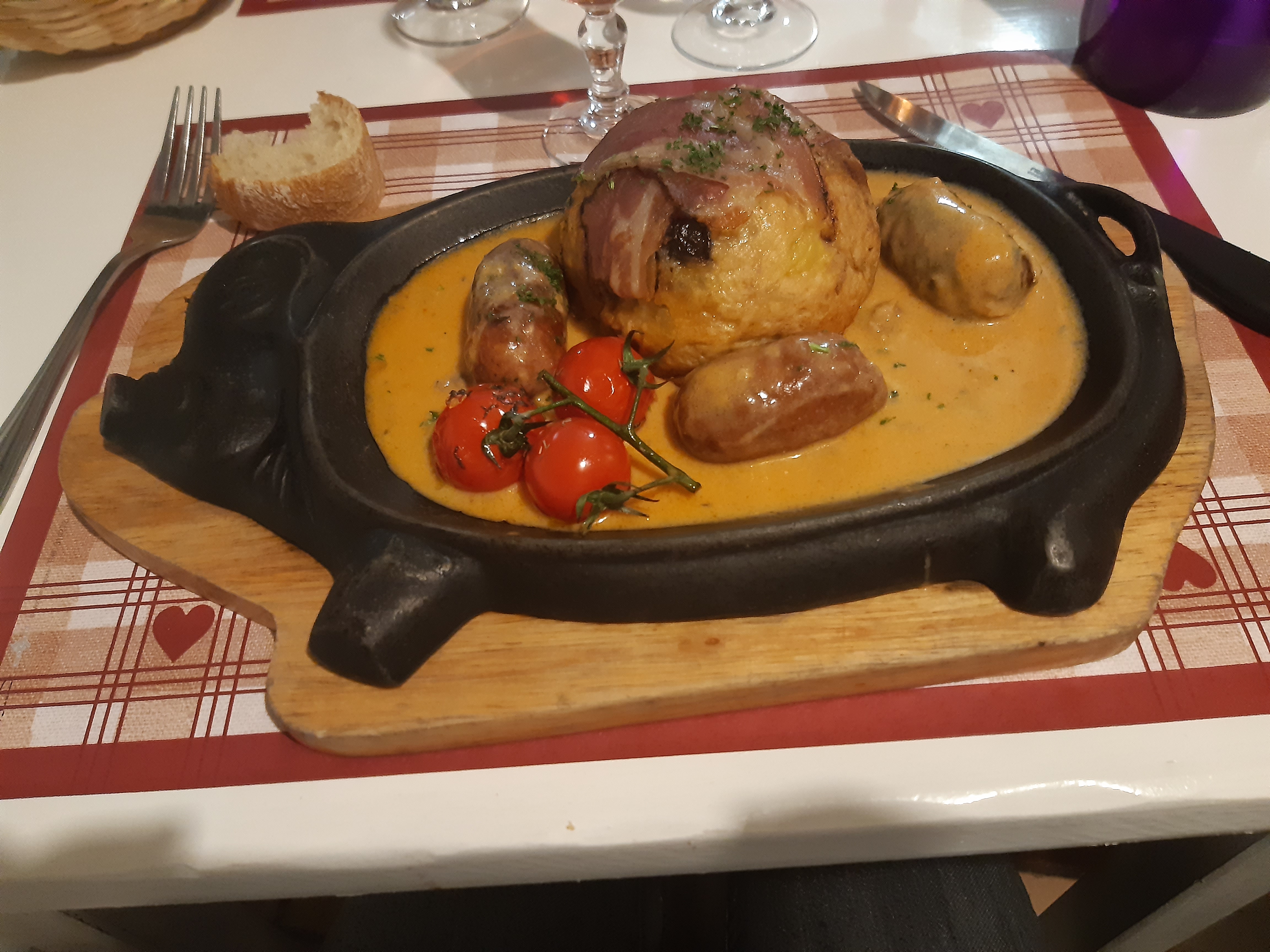 Une très bonne cuisine de terroir, faite maison, et un accueil agréable. Le Farçon est savoureux et je recommande chaleureusement ce plat aux bons appétits. Le pain et le vins sont bons et l'attente est raisonnable. Dommage que les desserts ne soient pas à la hauteur des plats.