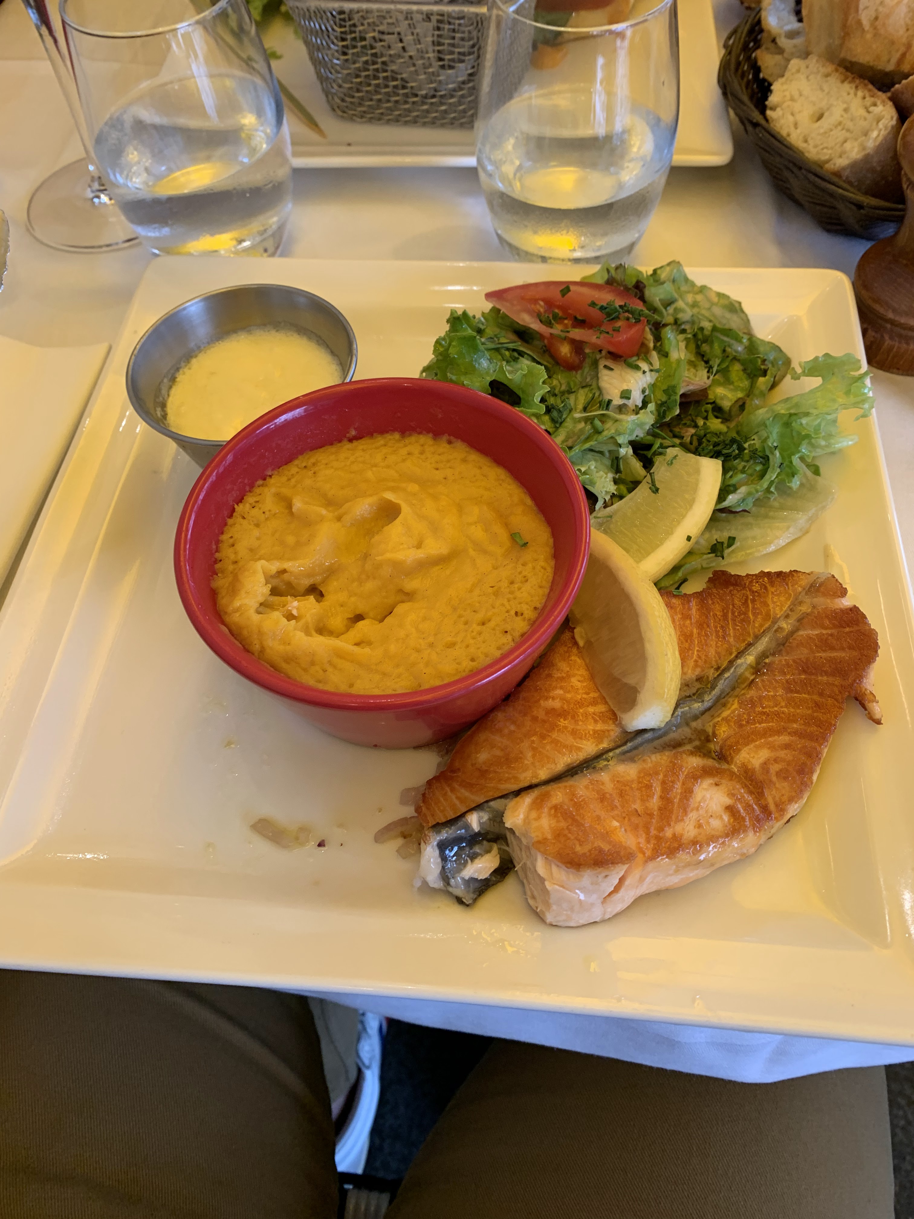 Après une visite de la Basilique du Sacré Cœur on est redescendus du côté des vignes. Dans le quartier à l'arrière le resto Au Relais m'est apparu direct sur Maps. Côté du Quartier Montmartre tranquille non touristique. Au Relais : 10/10 service/table avec nappe blanche, mieux vaut y aller avant 13h30, terrasses soit sous banne ou sous des arbres. 10/10 la cuisine Pavé de saumon grillé purée de Butternut et beurre blanc un délice. 9/10 ratio qualité/prix, petit resto de quartier très calme, de quoi respirer avant de retrouver la foule. Merci pour le très bon accueil et service.