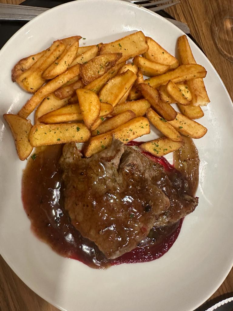 Très belle nouvelle occupation du restaurant traditionnel Chez Déde par la famille Boulas, la cuisine est rafraîchissante, originale et traditionnelle à la fois. En entrée j'ai eu la salade de tomates anciennes au fromage frais de Munster, la version vosgienne de la tomate mozzarella, très savoureuse et exactement ma portion ! Mon faux filet a été cuit comme commandé, entre saignant et à point, très fondant, et tout simplement parfait avec du beurre aux herbes, des frites fraîches et de la salade verte. L'ambiance est toujours de style vintage, elle me rappelle mon enfance dans les années 60. Continuez comme ça, nous reviendrons avec plaisir !