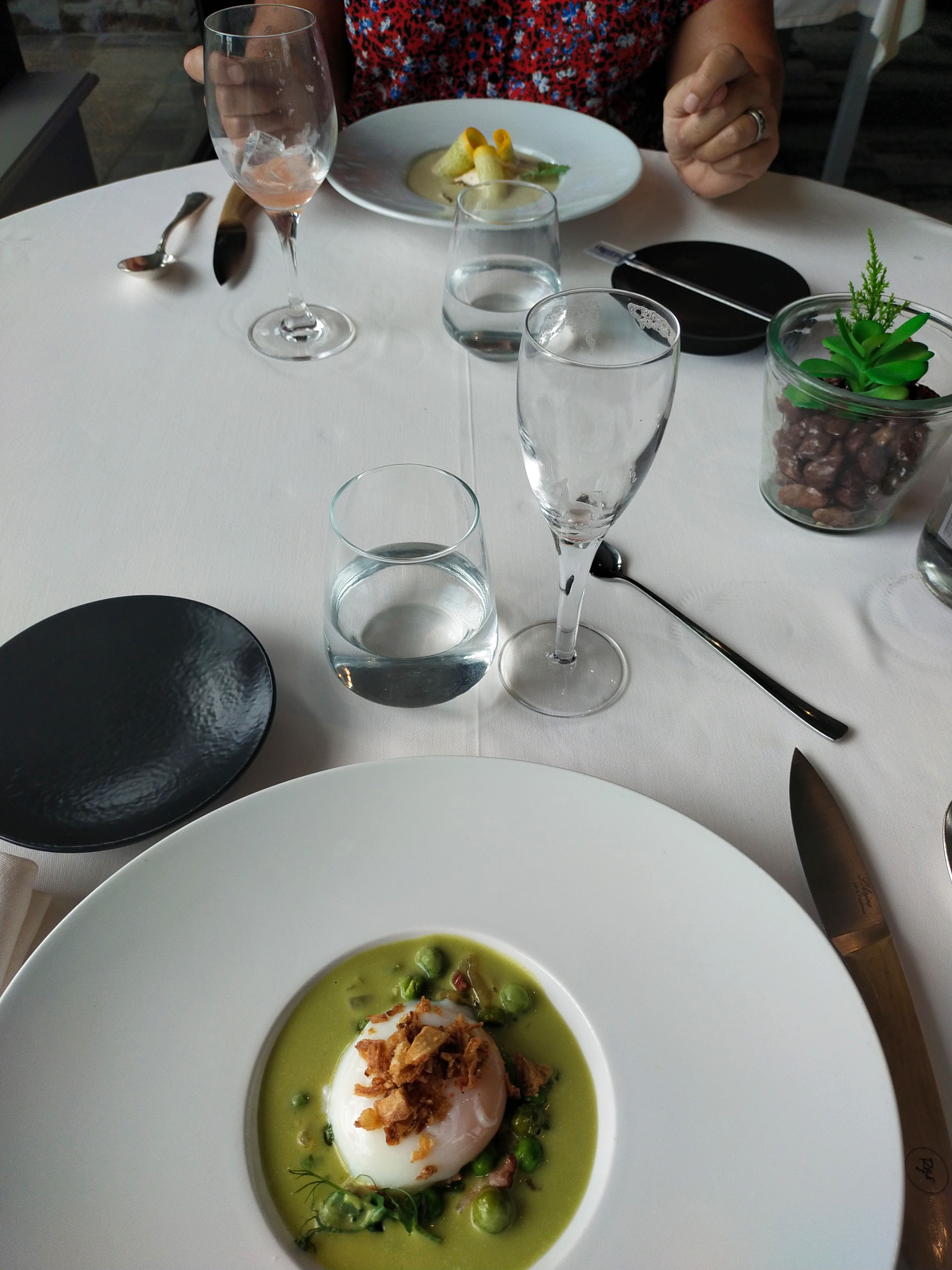 Dîner exceptionnel. Lieu d’exception et d’émotion.Très agréable de manger sous les arbres au bord de l étang. Personnel d’une gentillesse et d’un professionnalisme.