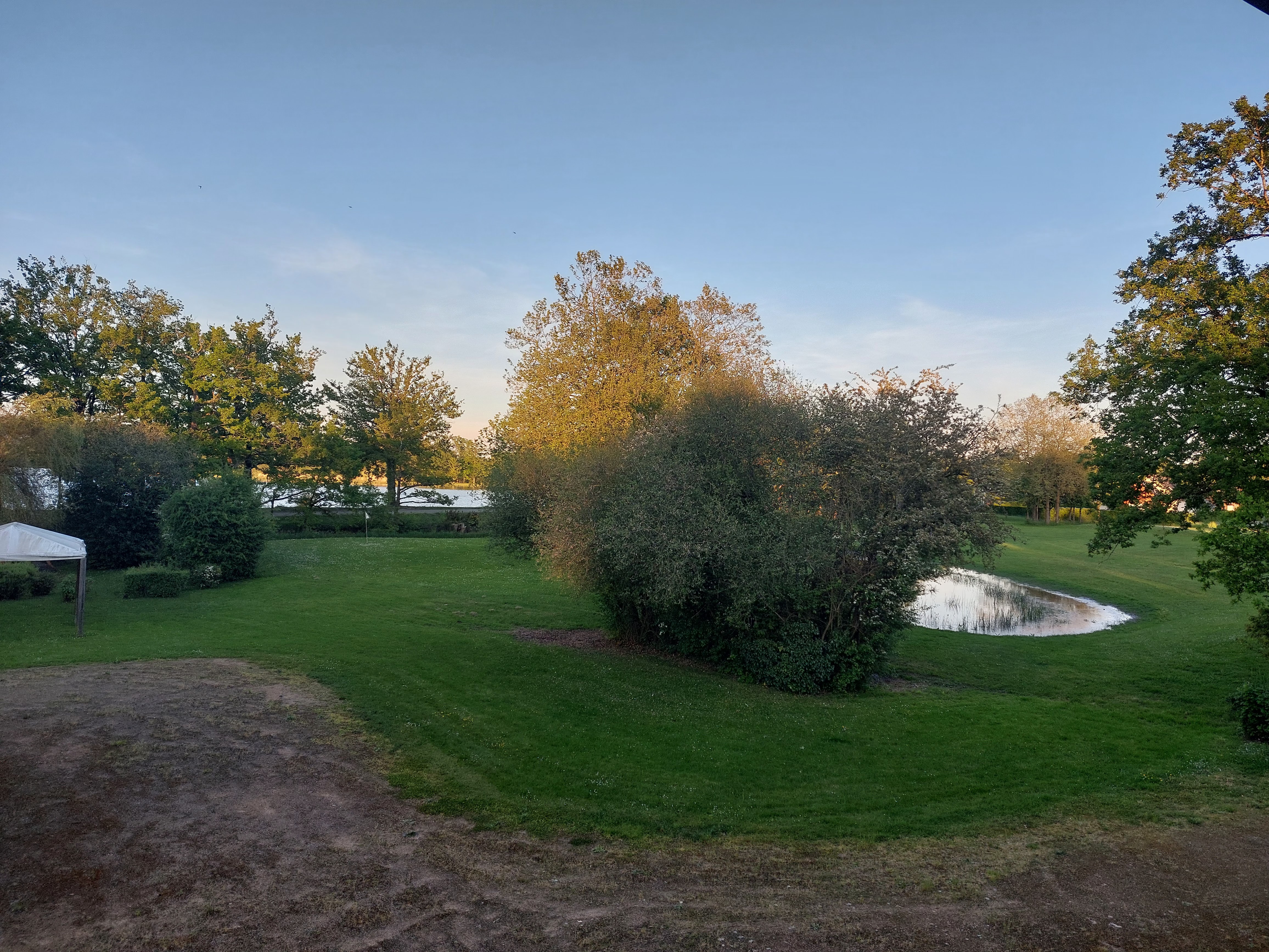 Lieu agréable. Repas en terrasse au bord de l étang. Viande excellente. Personnel très aimable. Belle piscine. Chambre avec grand lit. Très bon séjour.