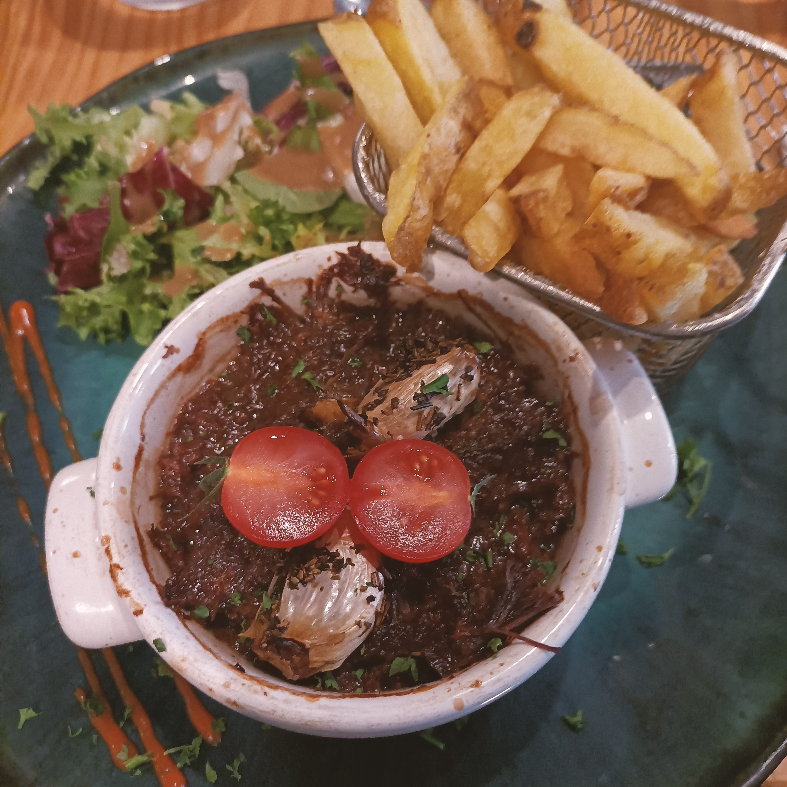 La cuisine n'est pas faite en totalité maison, comme les frites par exemple et prix assez chère , surtout le café en fin de repas