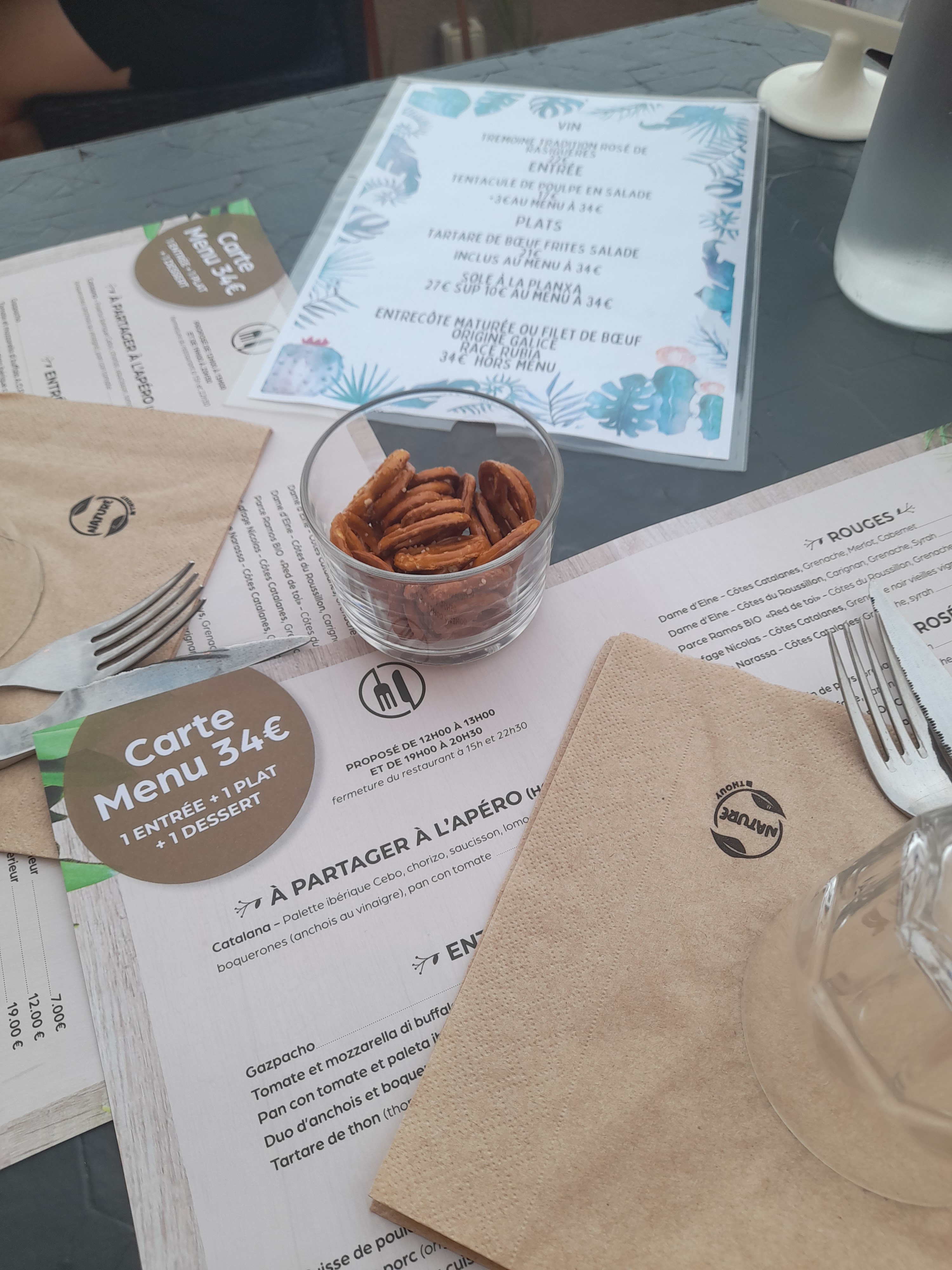 Un restaurant où on aime se retrouver avec ma mère, quand je passe la voir sur Elne. L’équipe nous reconnaît à chaque fois! Ça fait plaisir de se sentir considérer. Il possède une carte cohérente qui se renouvelle au gré des arrivages ou des envies du chef talentueux. Les assiettes sont aussi exquises que belles. Produits frais cuisinés avec goût. La terrasse ombragée est notre favorite, elle est bucolique, on s’y sent parfaitement bien. Alors, dans ce contexte, nous ne sommes pas prêtes à changer nos habitudes. À bientôt