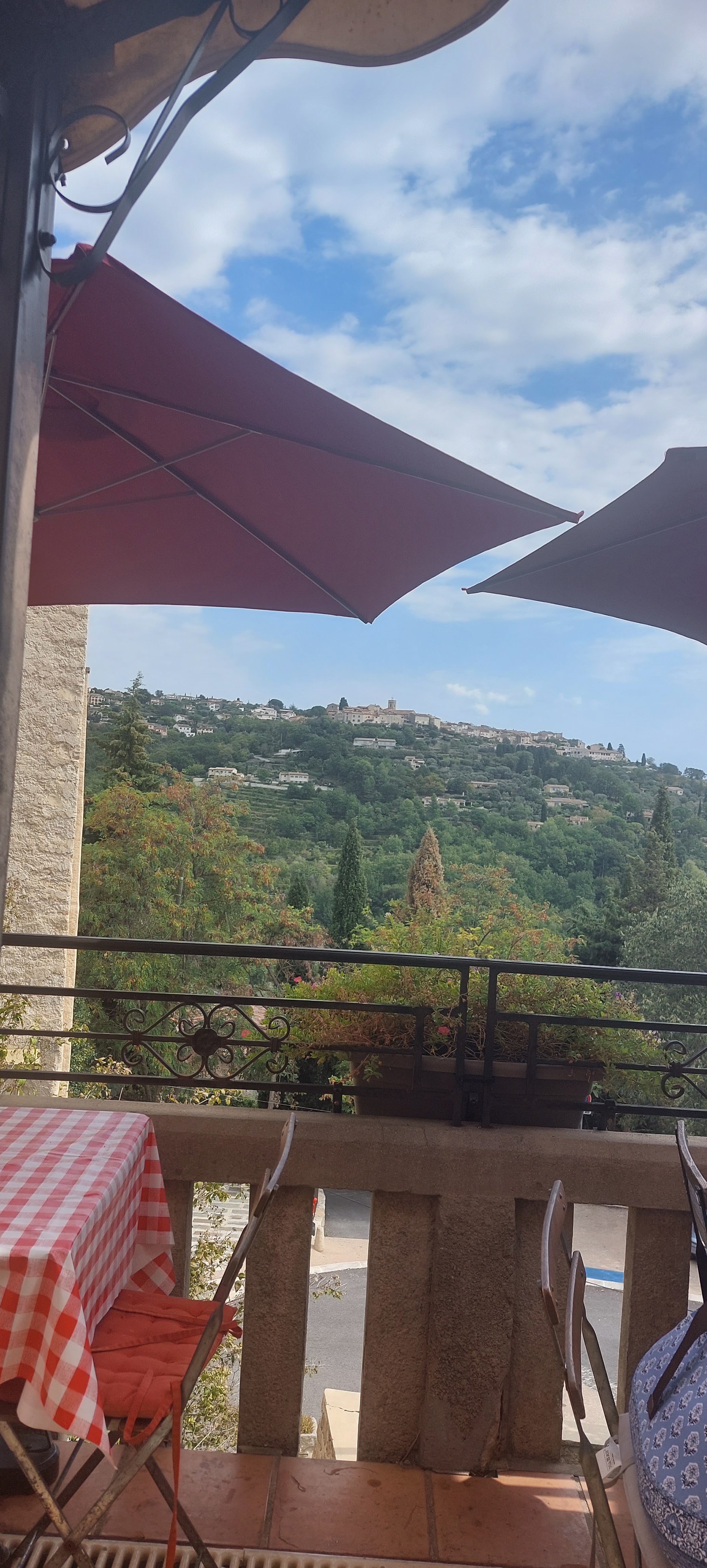 Bon point ici : superbe vue depuis la terrasse. Les prix sont trop élevés à mon avis. La nourriture est bonne, mais pas comme prévu, quand on voit ce que ça coûte. Nous avons dîné mieux pour de meilleurs prix, par exemple à Fayence. La commande et la préparation ont pris beaucoup de temps, mais le restaurant était plutôt plein. Les gens étaient gentils.