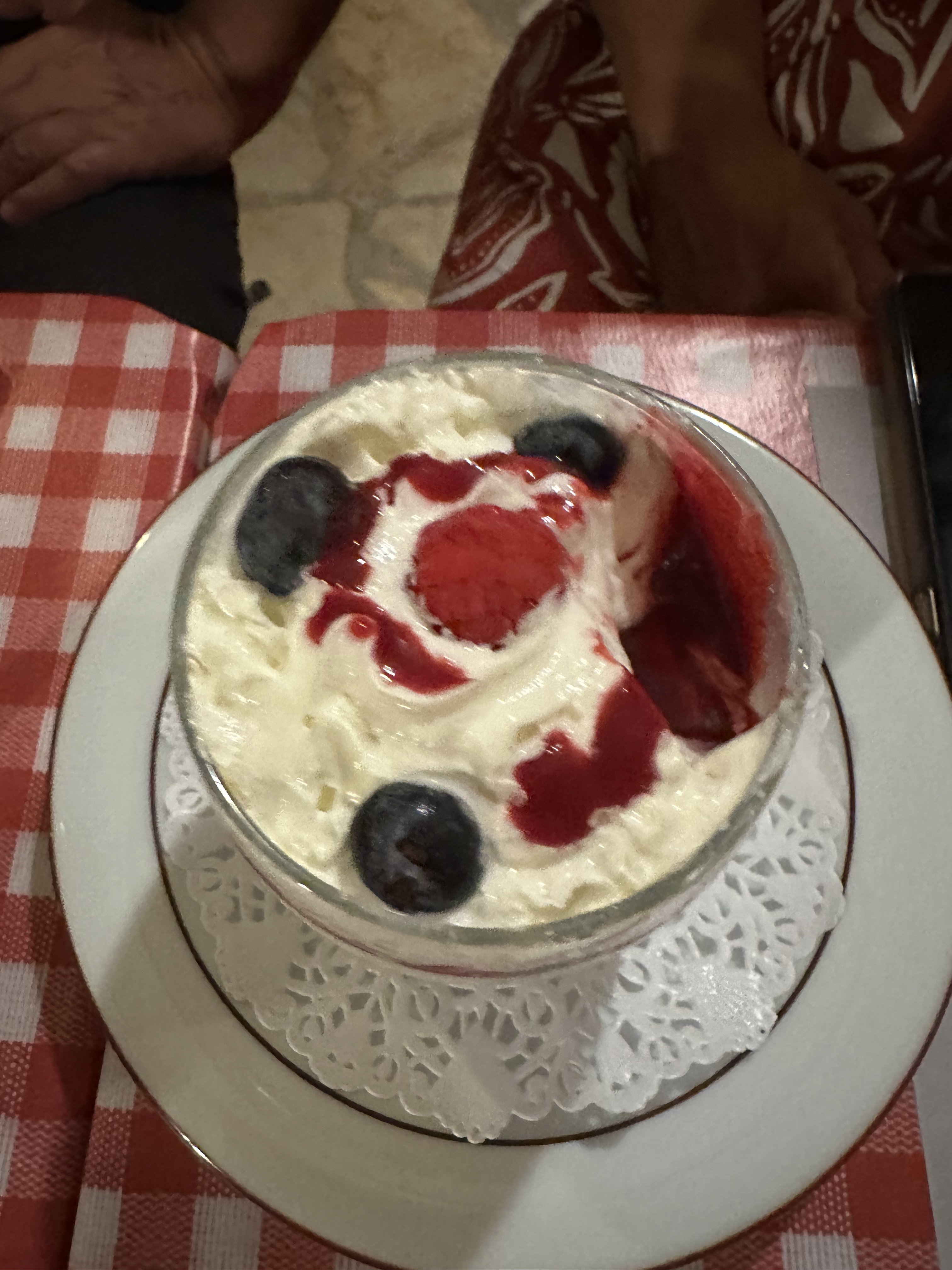Style français, service charmant. Tous les films français sortent, avec le village, la vue et les gens sympathiques. La nourriture est assez abondante, gardez cela à l'esprit. Le tiramisu est fortement recommandé, suffisamment copieux pour être partagé ! Toute la nourriture est bonne. Nous reviendrons certainement ici!