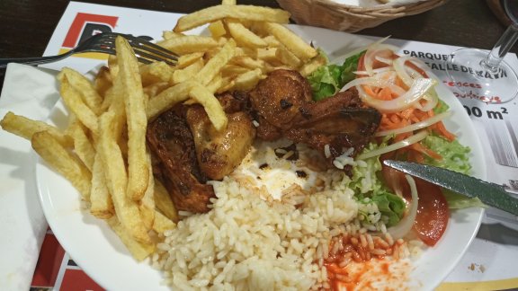 Toujours pareil, riz, salade vert, frites et rien vraiment de la cuisine portugueses.