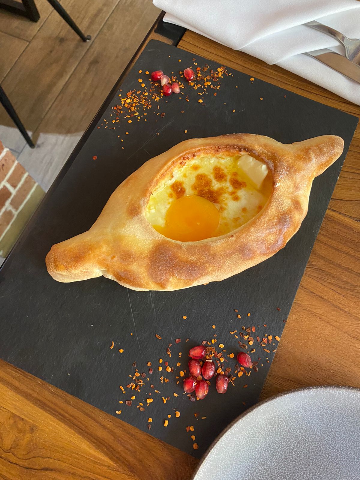 On trouve pas des bons plans comme ça tous les jours 😍😍😍 le chef cuisto est trop fort !! Merci 👌🏼👌🏼 j’ai mangé un Khatchapouri. « Pain au fromage fondant » plat national de la Géorgie 🇬🇪 je connaissais pas et c’était vraiment délicieux.