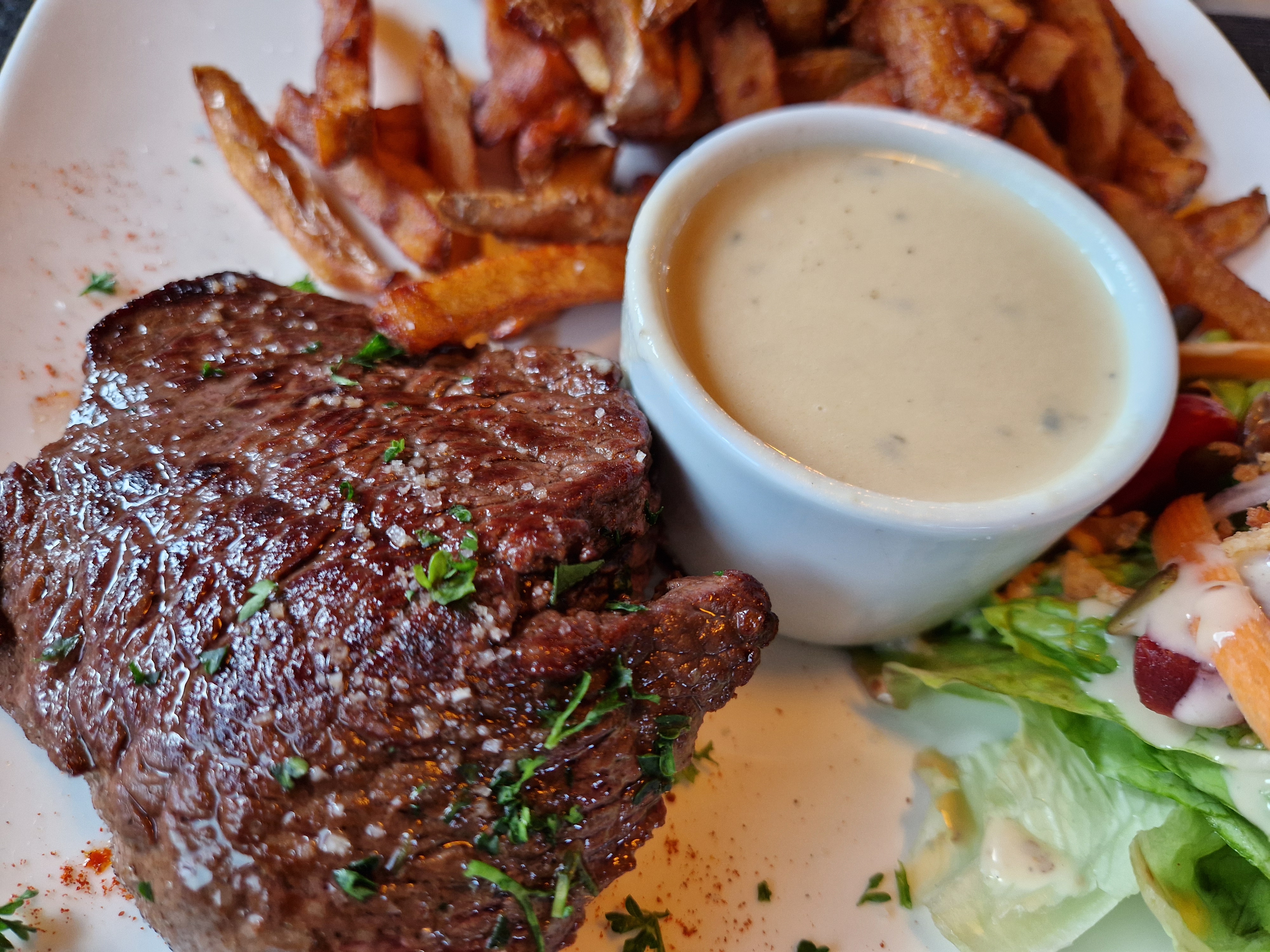 Cadres conviviales et chaleureux autant a l’intérieur qu’a l’extérieur, plats copieux, bien présentés et tres bien préparés le tout avec un service souriant et efficace ! Je recommande vivement !