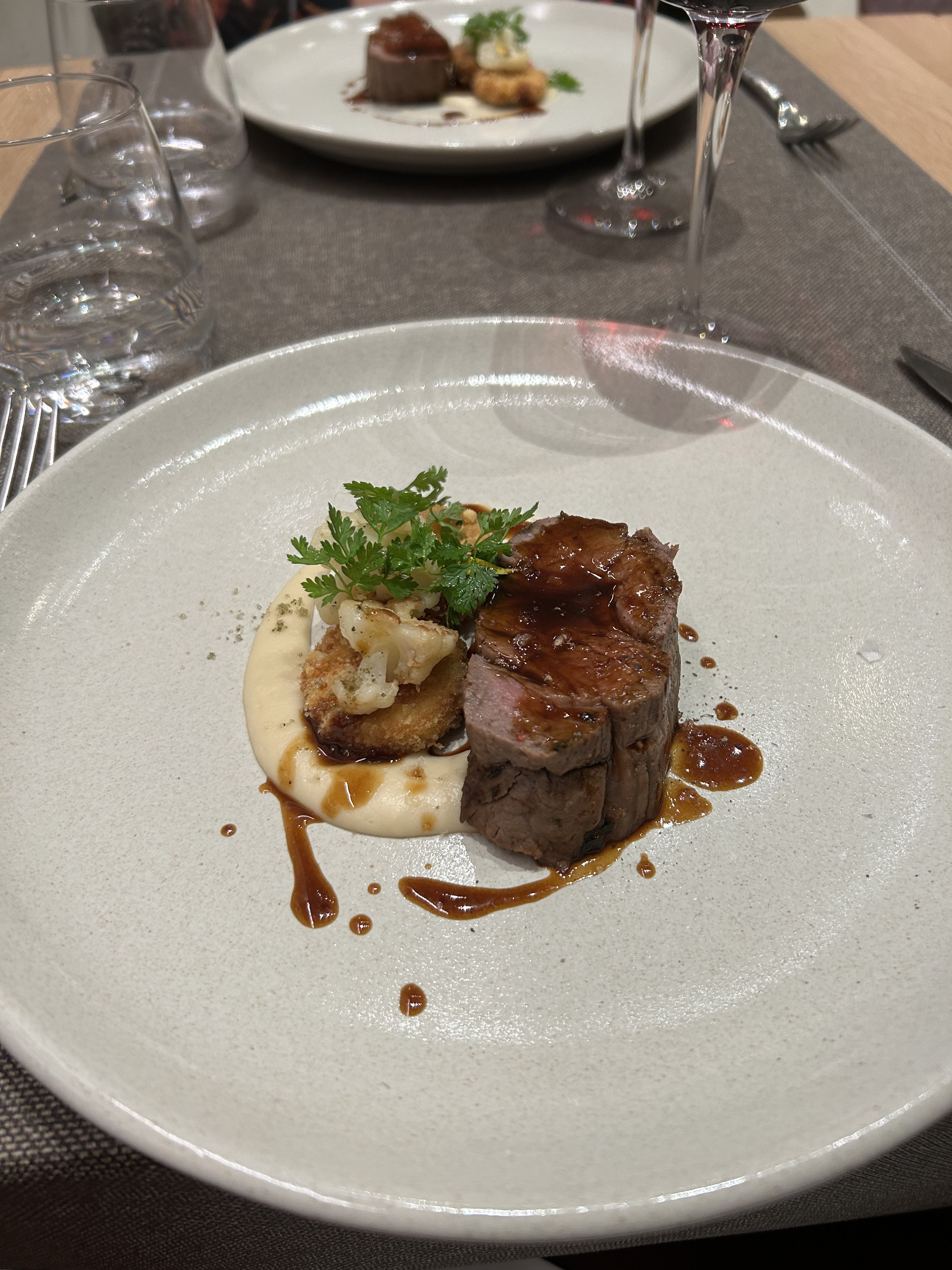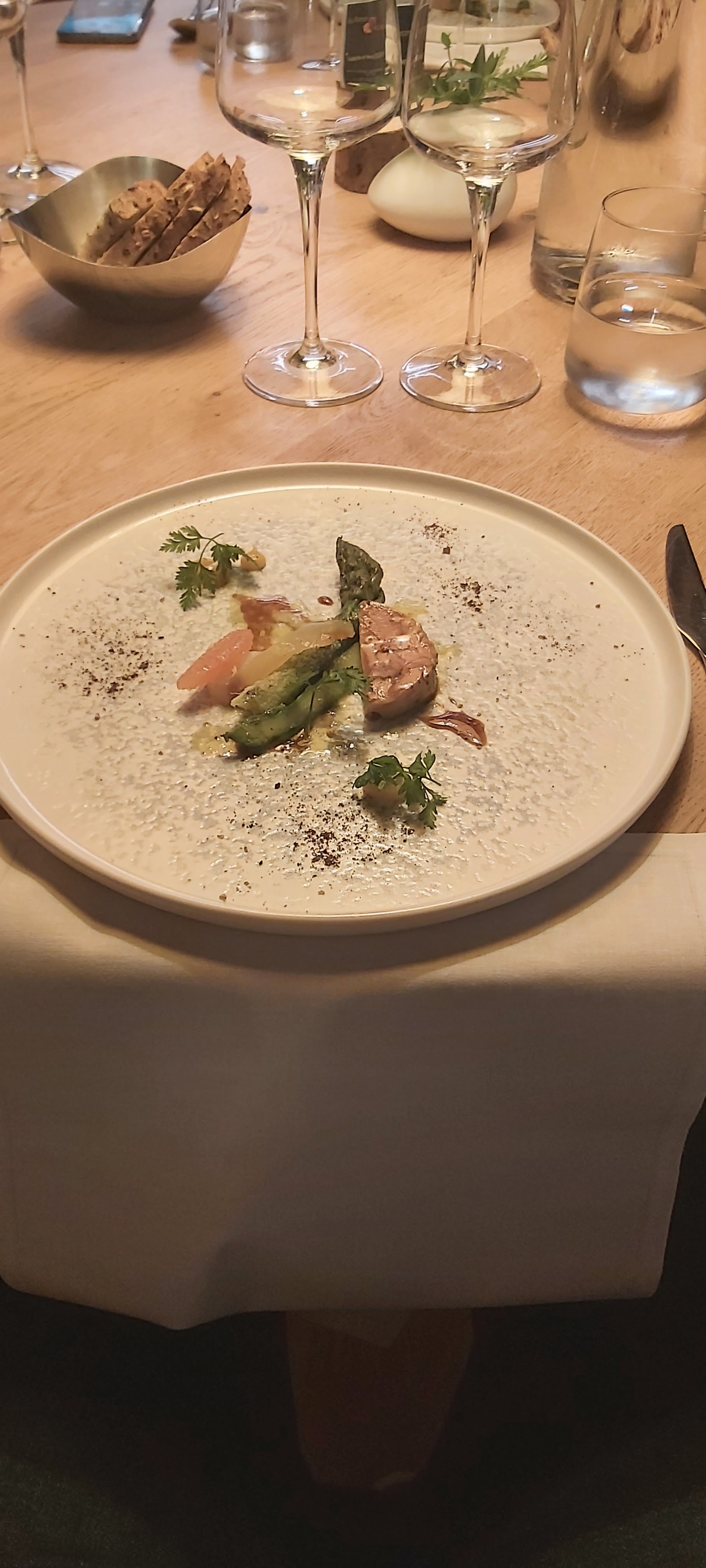 Cadre magnifique et service chaleureux, le personnel est très sympathique et au petit soin. Le repas était excellent, composé de mets raffinés, de qualités, locaux et des saveurs qui sortent de l’ordinaire. En tant que végétarien et accompagné d’une femme enceinte, c’est très agréable car les plats ont pu être adaptés aux différents régimes. Il faut penser à prévenir le restaurant lors de la réservation. Une belle expérience et un excellent moment !