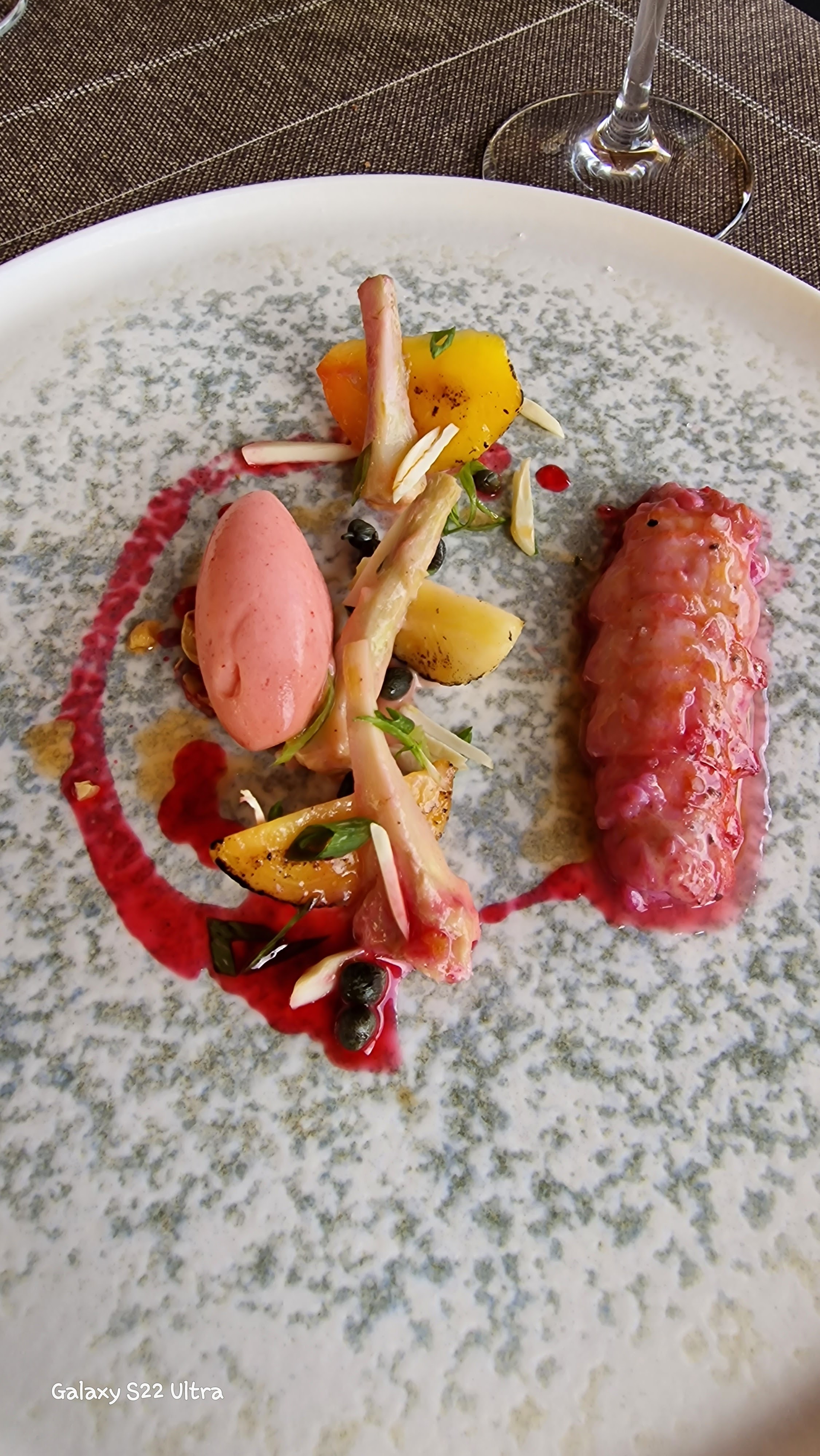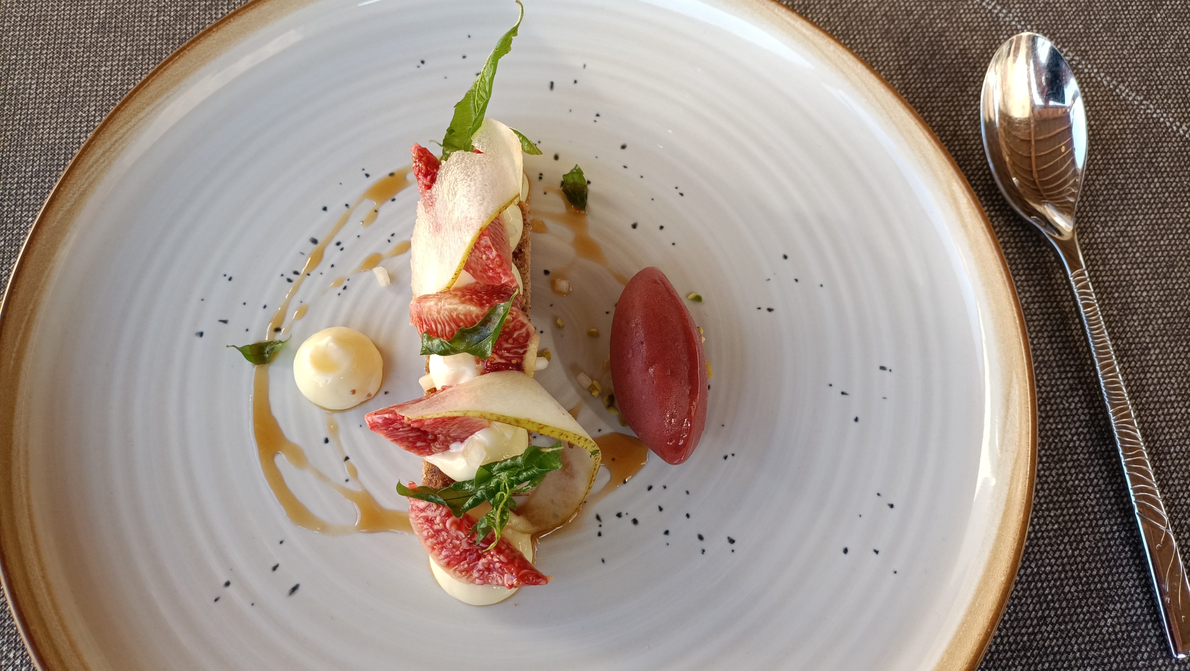 Souvenirs d’un excellent dîner gastronomique en famille… Des assiettes superbes avec des saveurs incroyables. Surtout le sorbet au litchi !