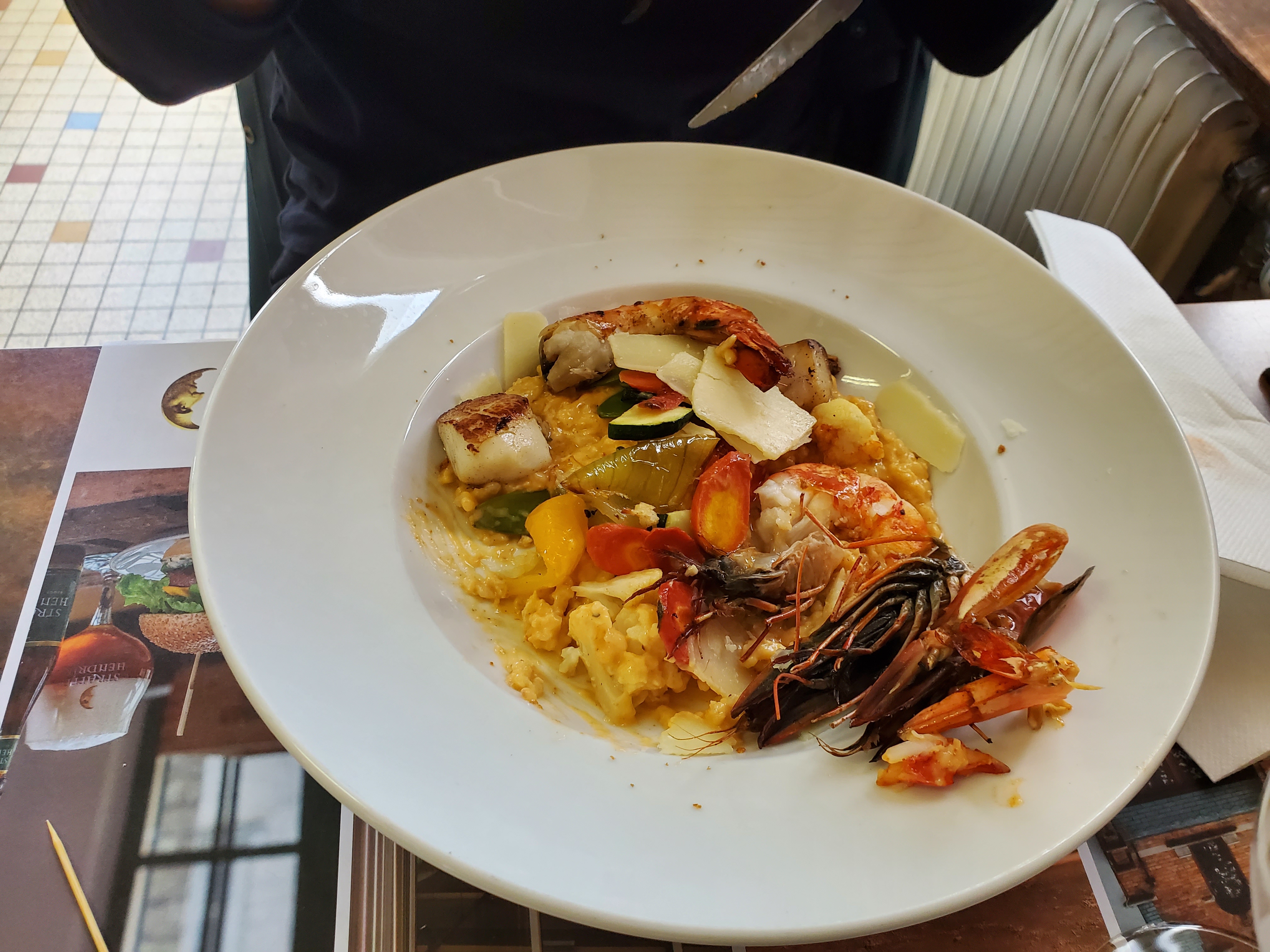 La journée avait vraiment mal, très mal commencée. Déplacement professionnel sur ANNOEULLIN annulé à la dernière minute. Bien sûr on était déjà sur place donc direction le SAINT HUBERT et sa terrasse superbe mais dont l'accès était gâché par le temps pluvieux. Et pour finir, pas de bière brune à la carte ...Bref une journée qu'on aimerait oublier. SAUF qu'après s'être posé dans cet établissement, tout s'est amélioré pour nous trois. Le personnel était très patient, disponible et pro. Et c'était sans compter le un choix des plats très intéressants. Une petite mise en bouche avant un chuck flap black pearl excellent, une bouteille de vin suggérée avec pertinence. Waou! Tout s'est très bien accordé, tout était parfait et cette journée mal commencée s'est terminée avec le sourire . Merci au staff, au(x) cuistot(s) . Je pense que nous reviendrons pour goûter cette fois-là la spécialité du chef (duo de gambas et ses tentacules confites.. plat qu'il nous a confié maîtriser à la perfection ;) )