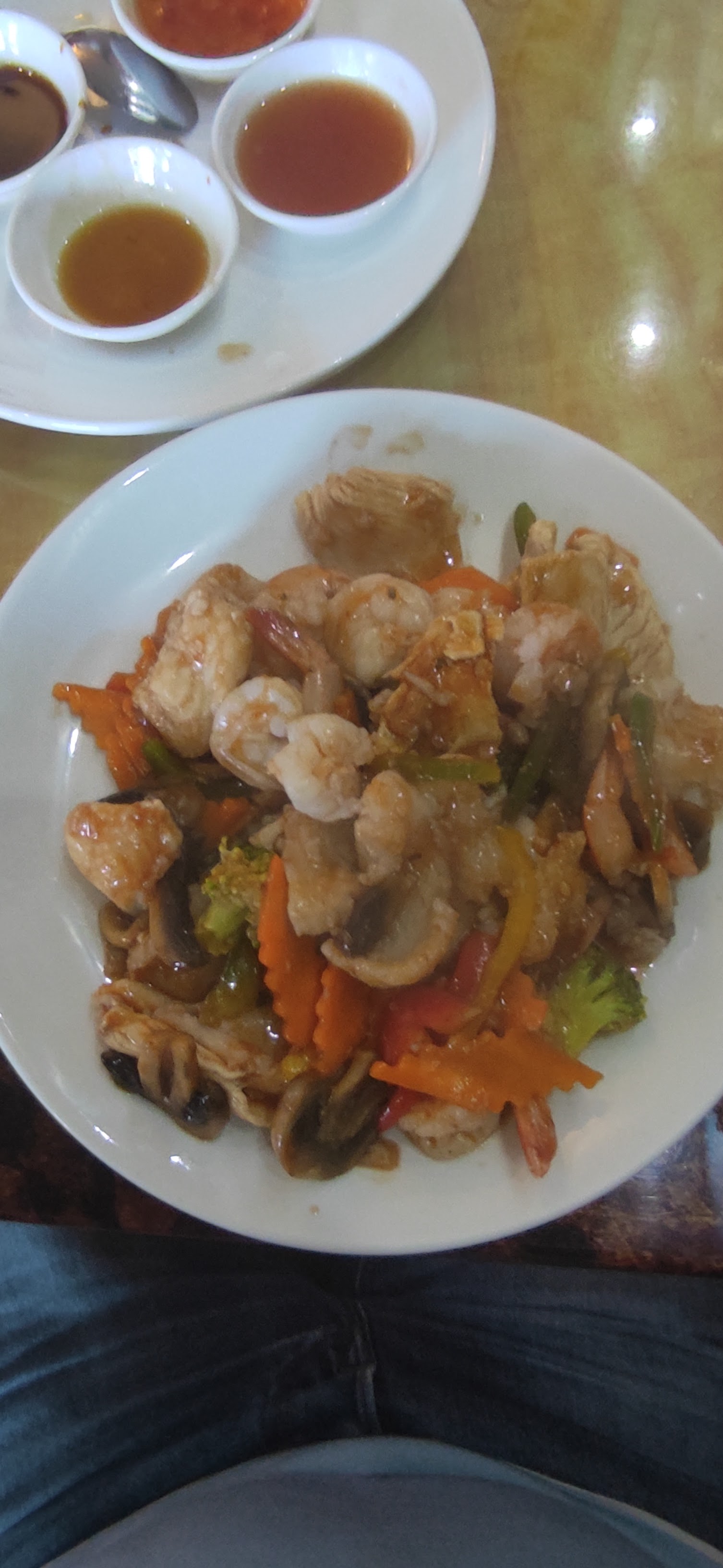 Très bon nous avons fait livrer, crevettes poivre et sel crevettes sauce taillandaise, etc.. très bon et. Très bien garni, beaucoup de crevettes.