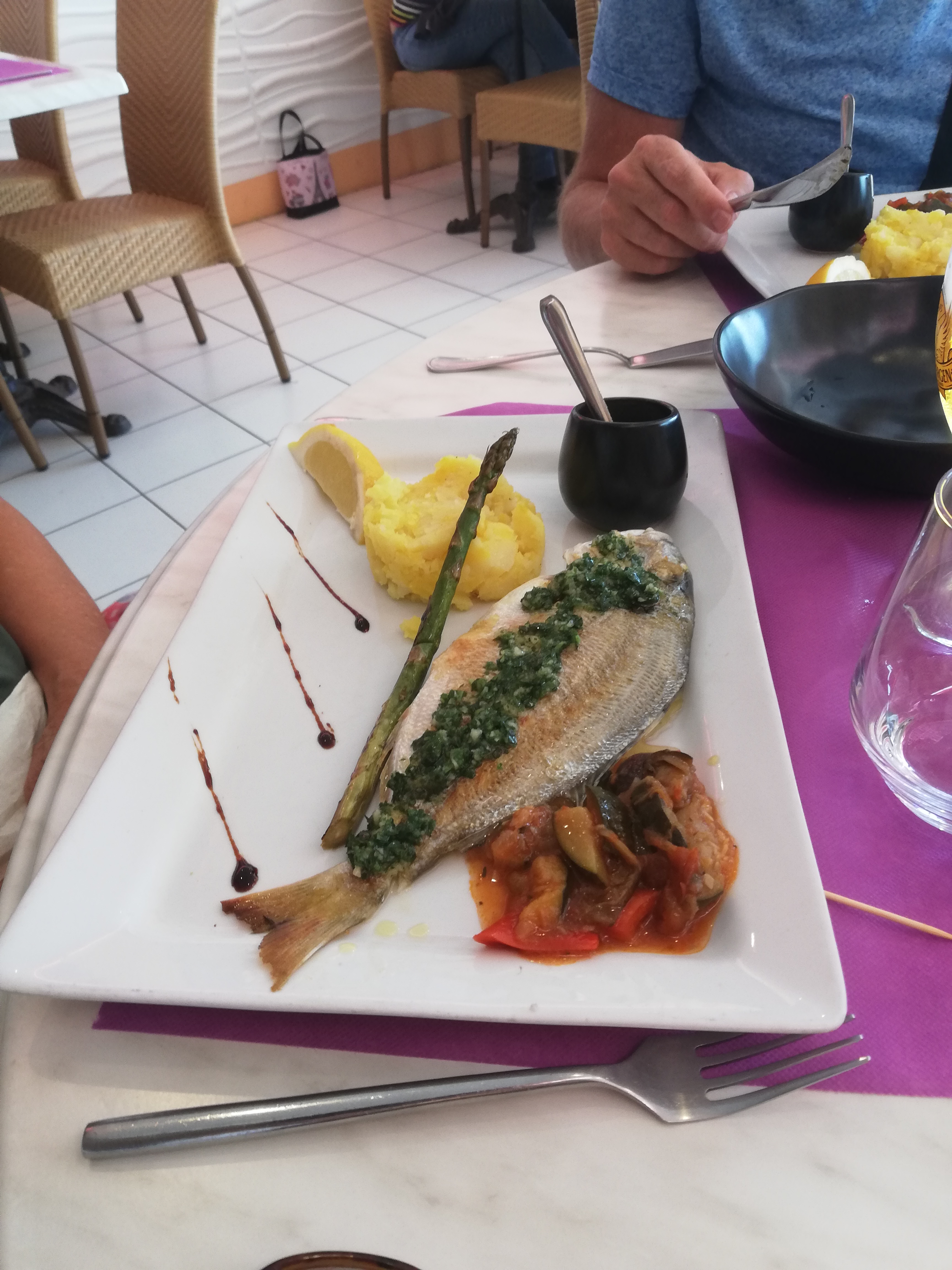Une bonne adresse au Cap d’Agde. La soupe de poissons, les moules gratinées et le loup nous ont beaucoup plus. Notre serveuse comme le patron étaient très accueillants.