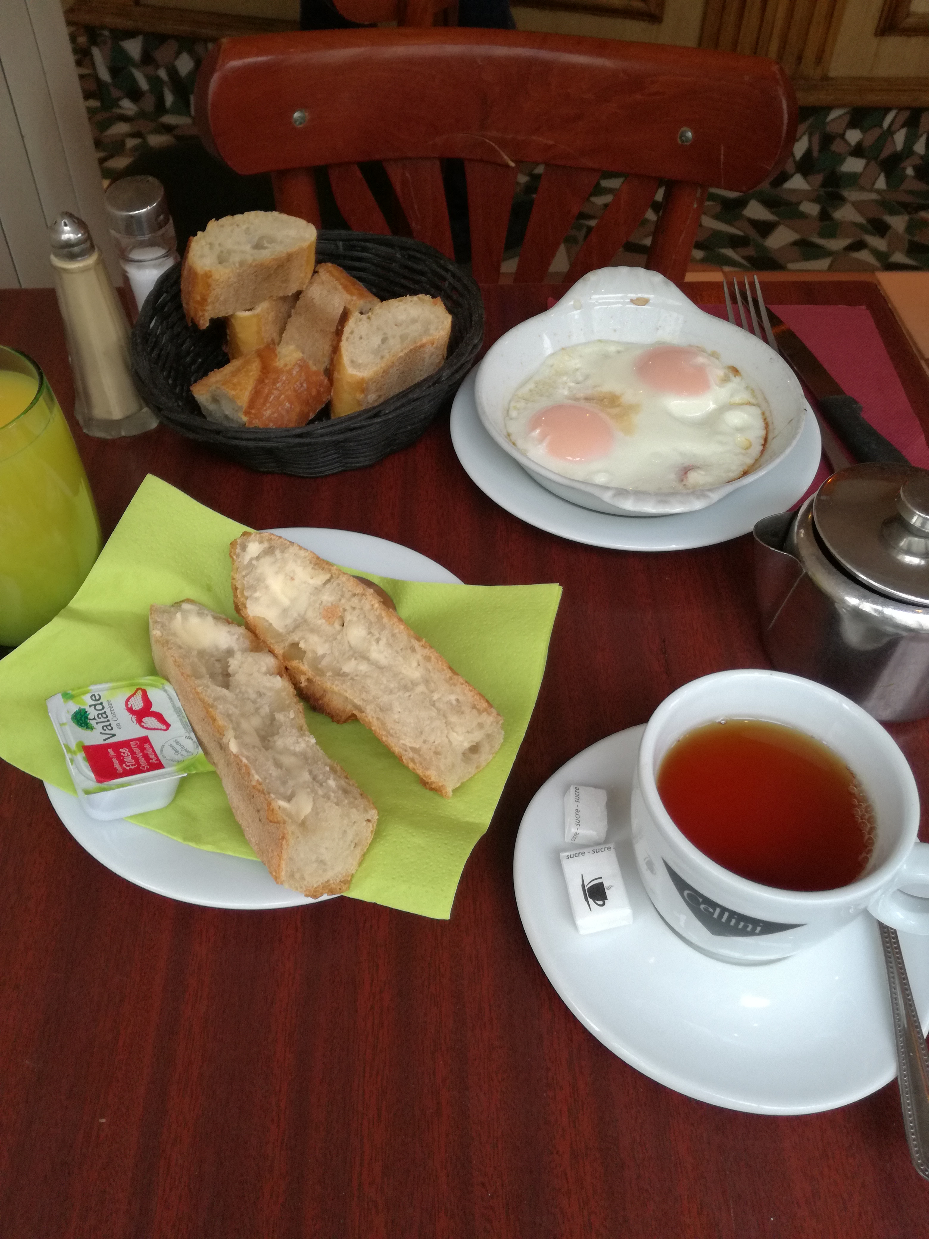 Nous venions pour petit dejeuner. Ca include jus d'orange, café et croissant. €8.8 pour une personne. Le café est très très amer, le jus d'orange pas frais, au moins le croissant est bon. Le service lent et pas trop sympa. En total, comparé avec des autres places avec le même (en meilleur) et moins cher à payé ici 2.5*